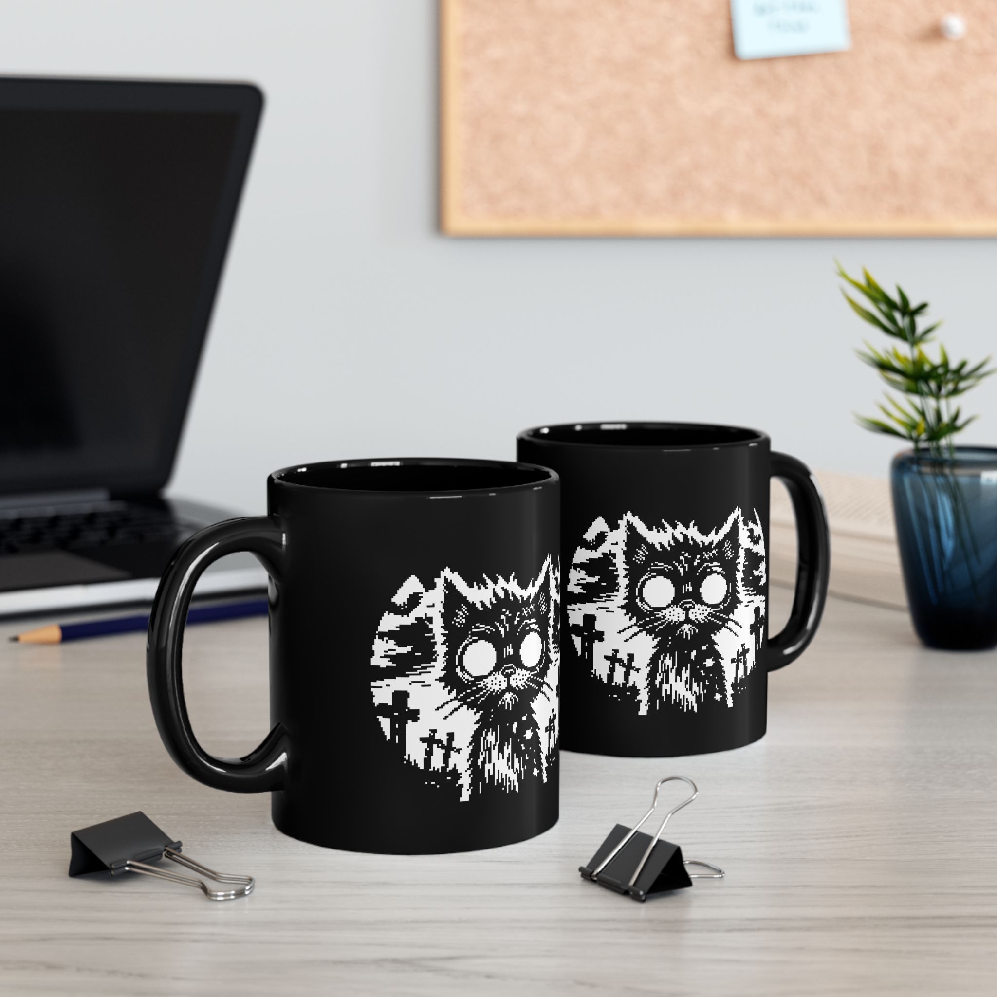 He clawed his way out of the pet cemetery… for coffee. This undead feline icon brings pixelated panic and purrfect chaos straight to your morning brew.