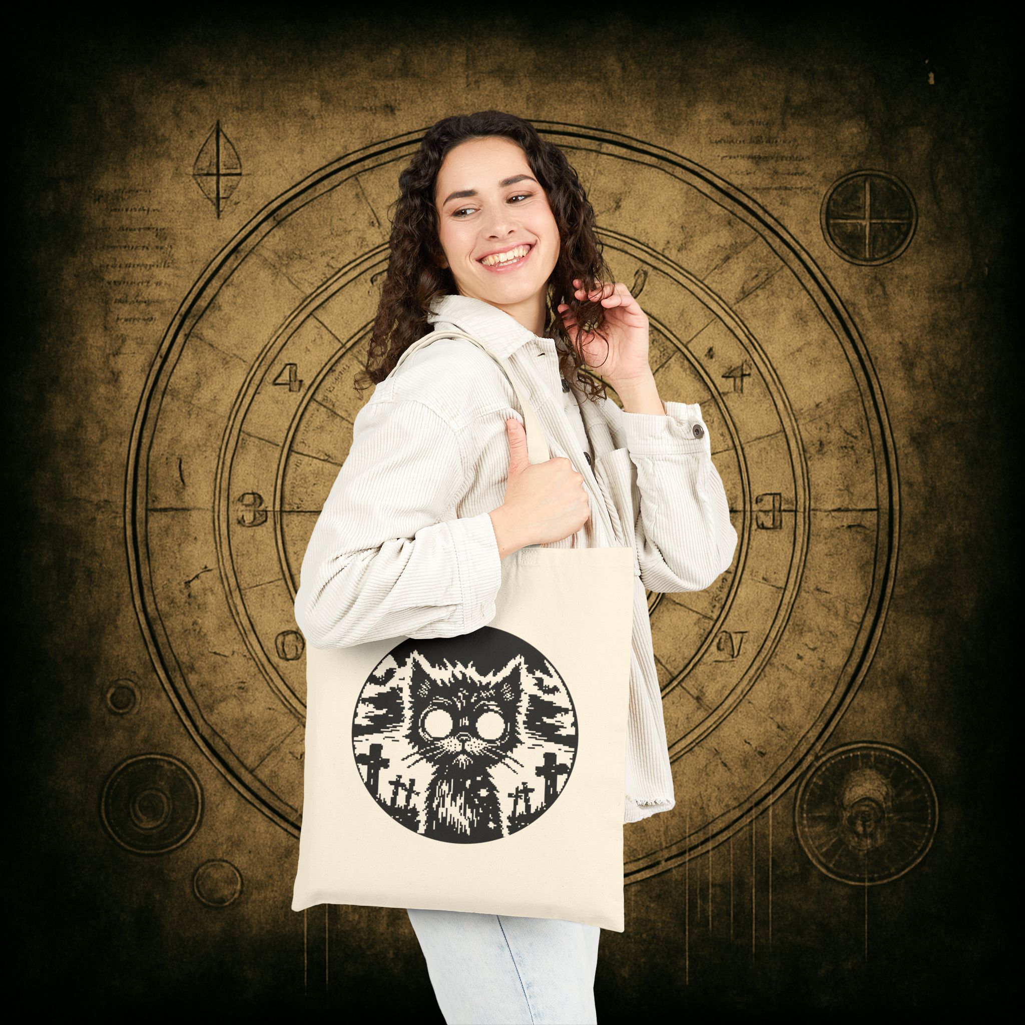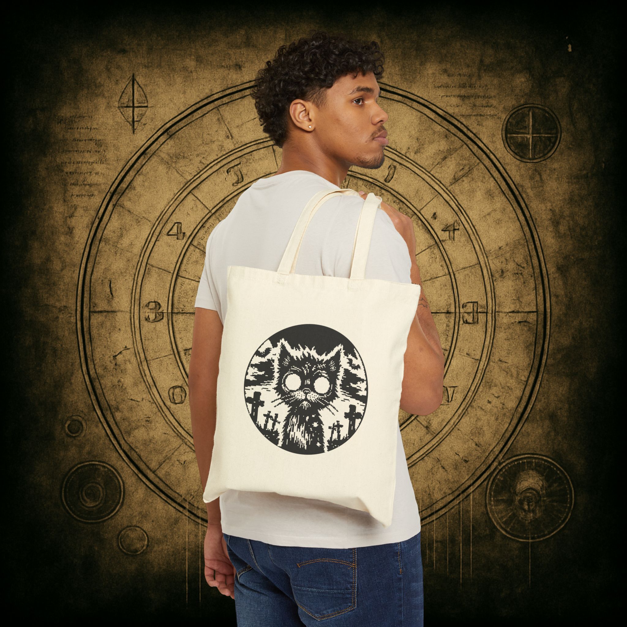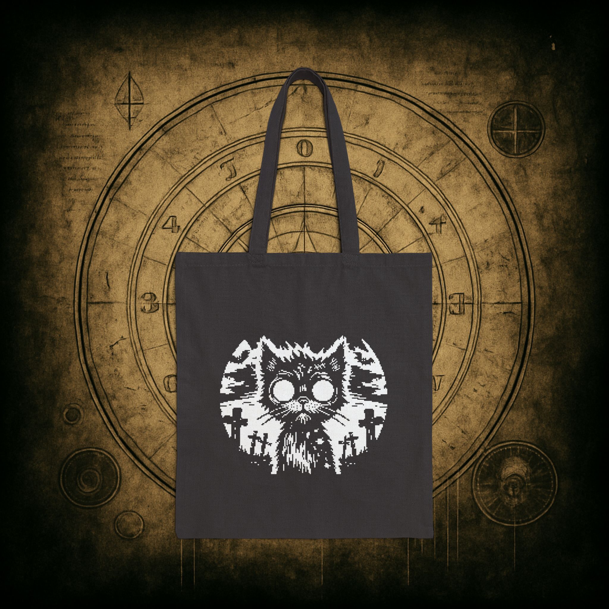 From beyond the grave and straight into your everyday chaos, the Zombie Cat Tote Bag is here to claw its way into your cold black heart. Featuring a ghost-eyed feline risen under the full moon in a graveyard of regret, this hauntingly cute creature is ready to carry your essentials or your secrets.