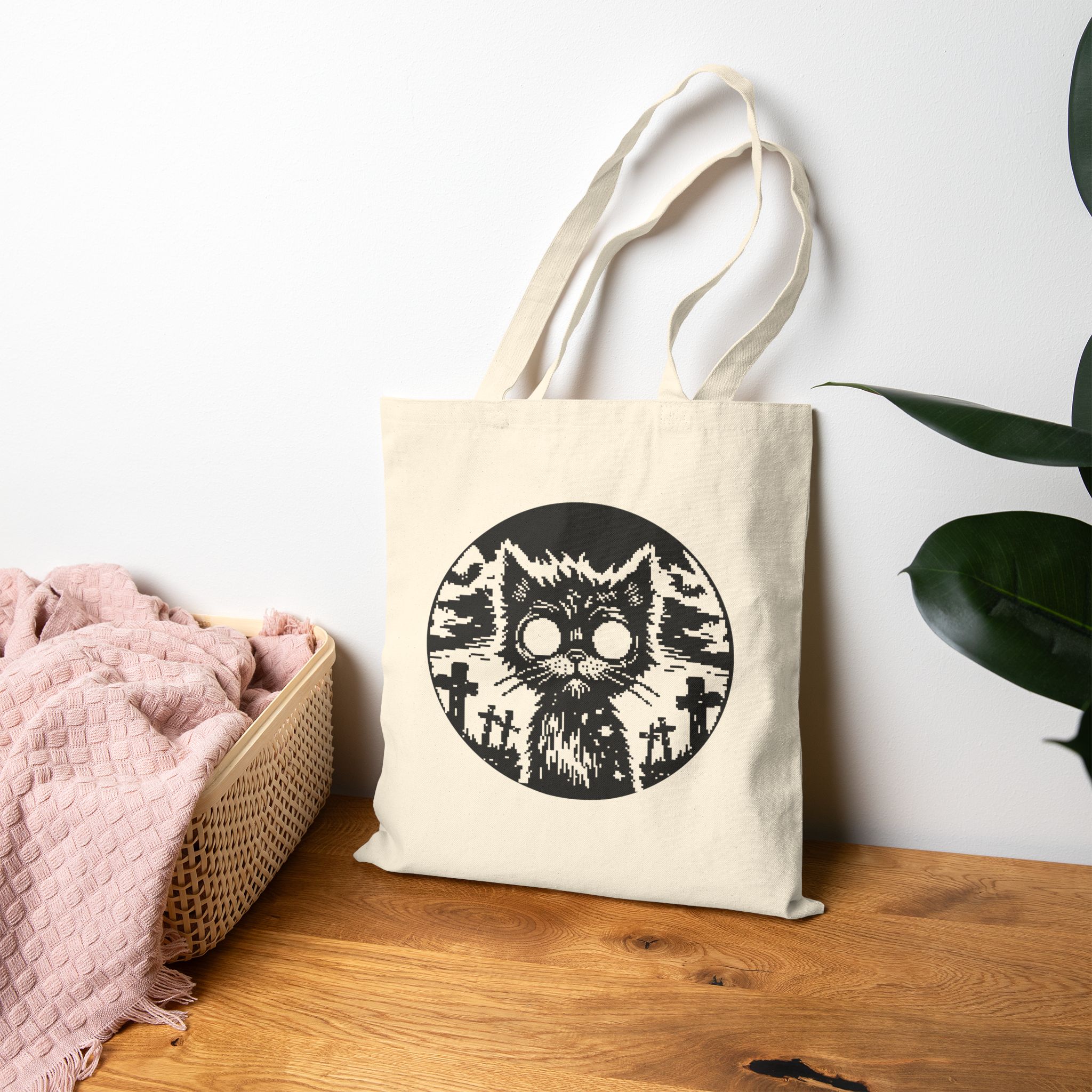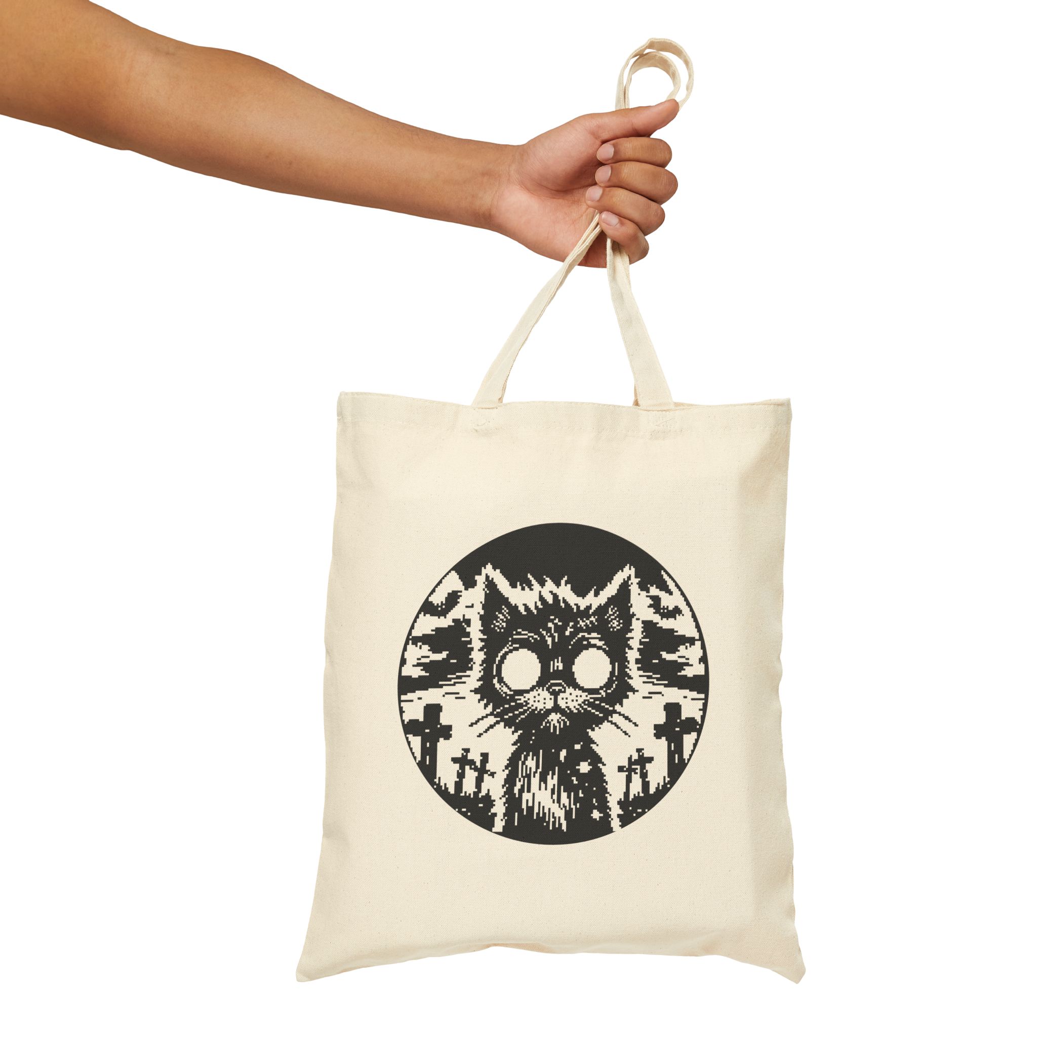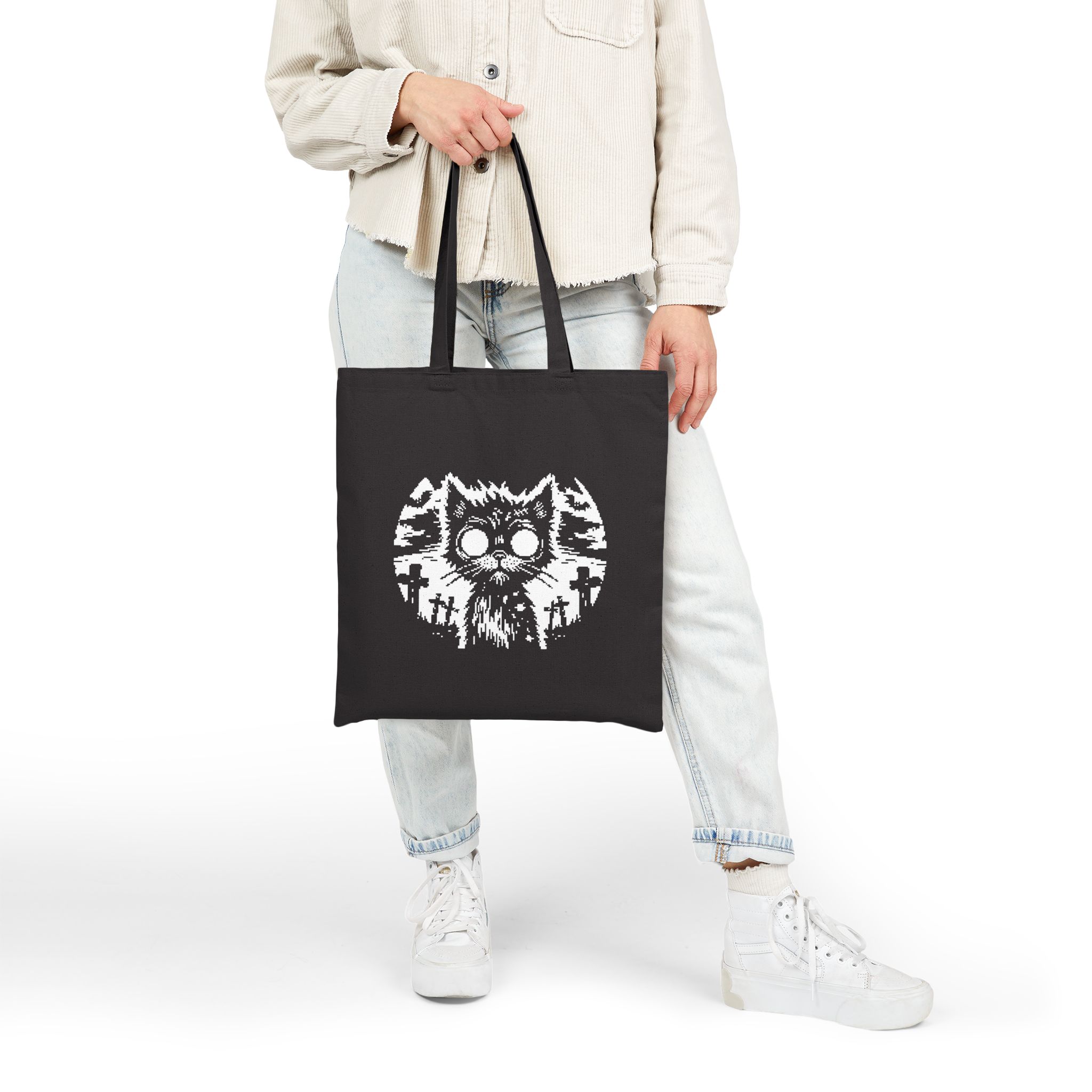 From beyond the grave and straight into your everyday chaos, the Zombie Cat Tote Bag is here to claw its way into your cold black heart. Featuring a ghost-eyed feline risen under the full moon in a graveyard of regret, this hauntingly cute creature is ready to carry your essentials or your secrets.