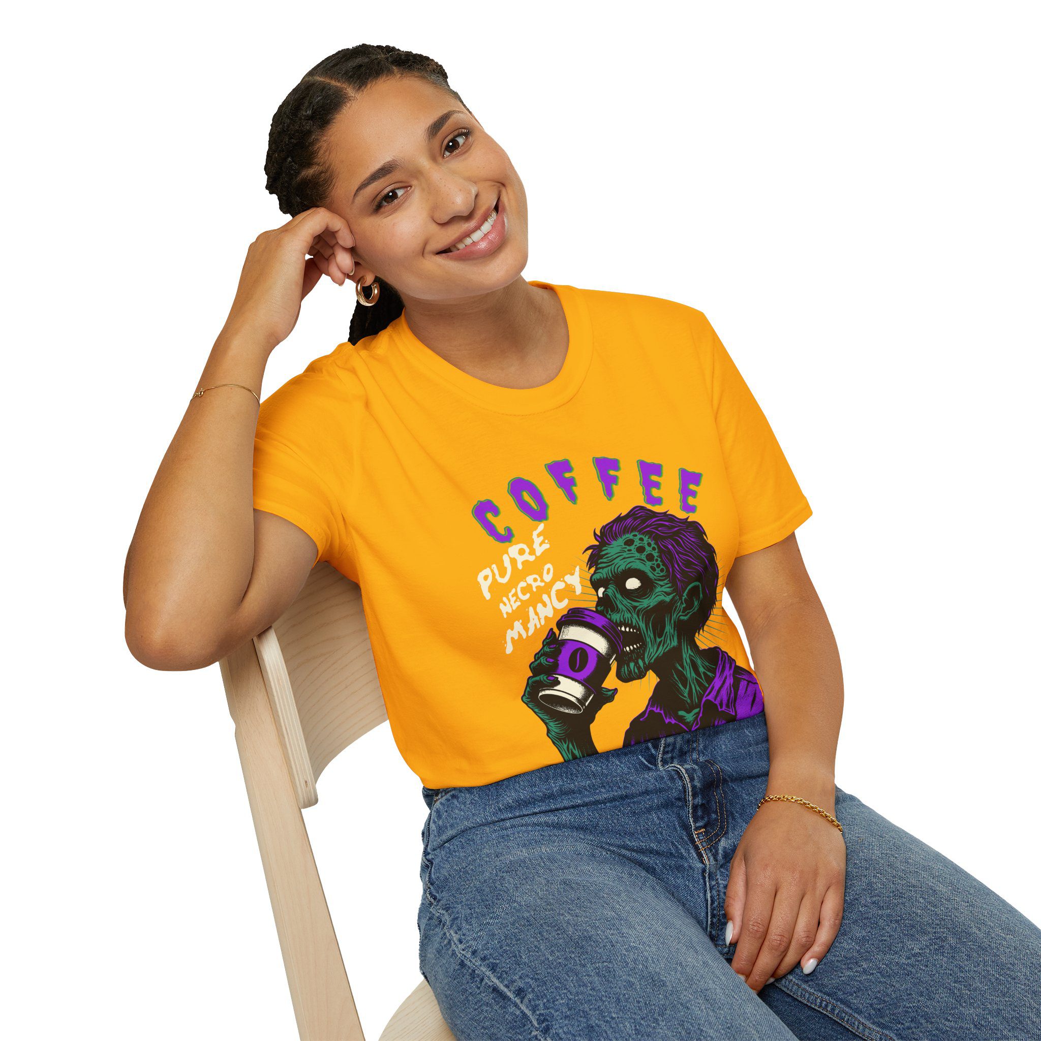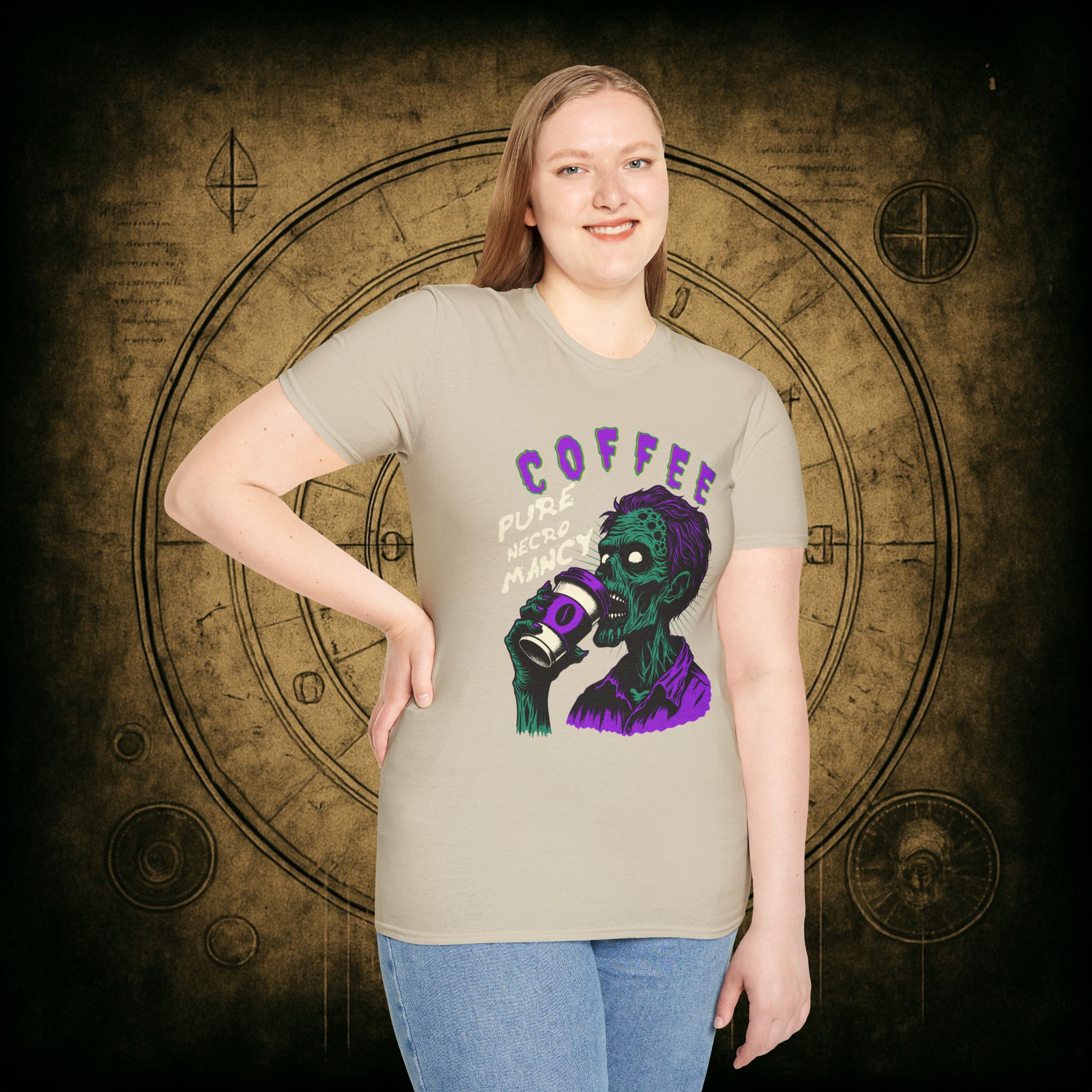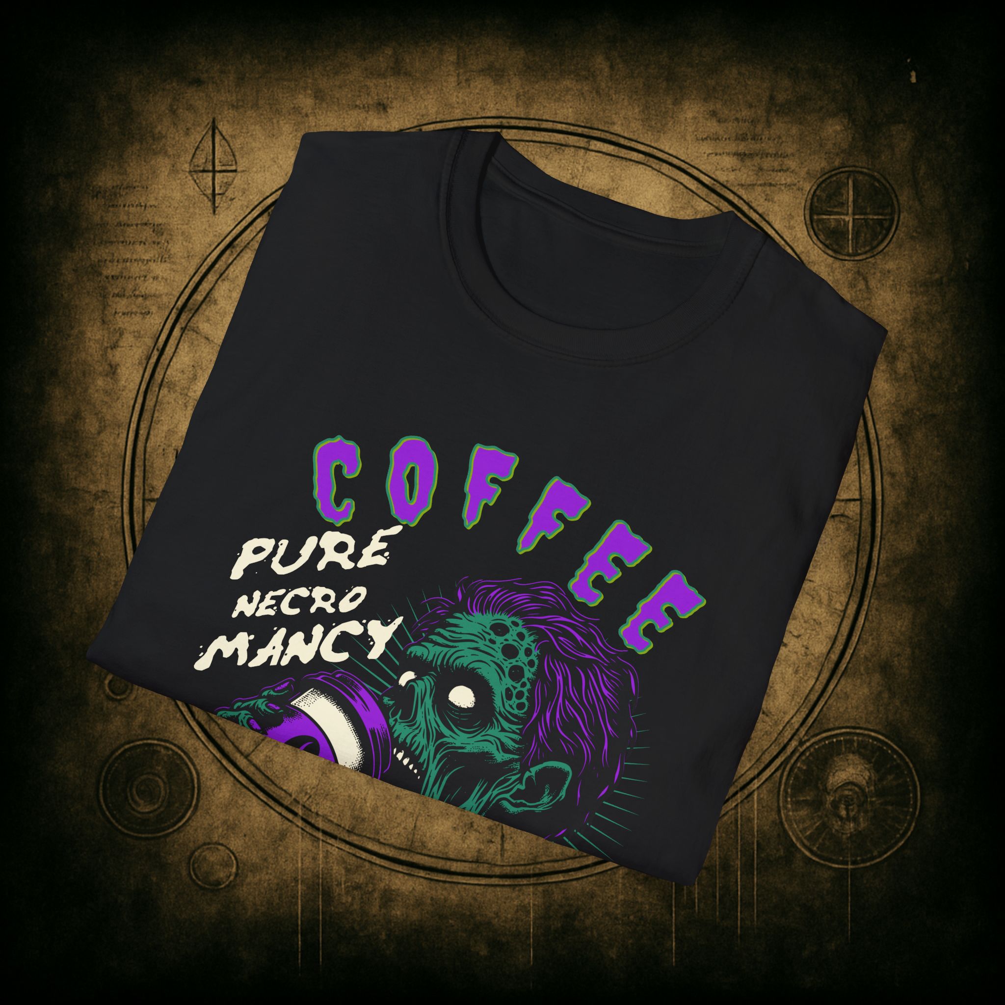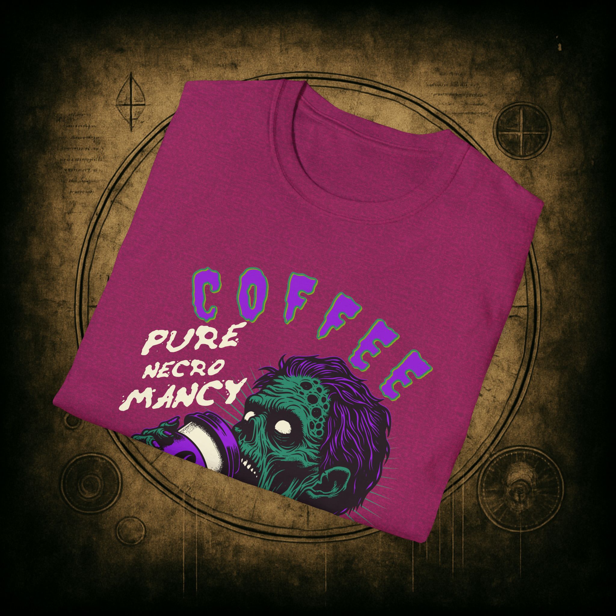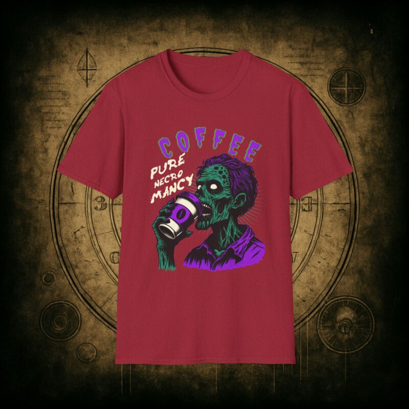 This T-Shirt is perfect for the coffee addict who believes in the power of caffeine to raise the dead. With a design featuring ‘Coffee Pure Necromancy’ and zombie imagery, this shirt exudes a quirky and edgy vibe. It’s ideal for those who love dark humor and want to make a statement. This T-Shirt is relevant for coffee lovers, zombie enthusiasts, and those who appreciate unique and unconventional designs. Perfect for Halloween, casual wear, or as a conversation starter.