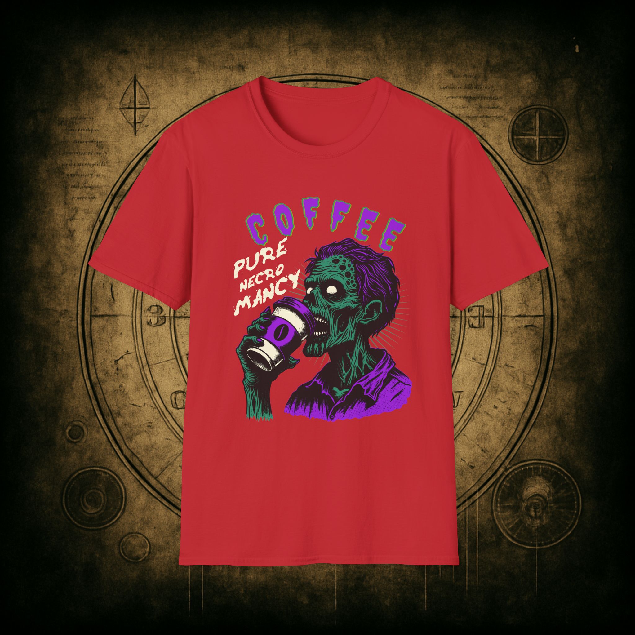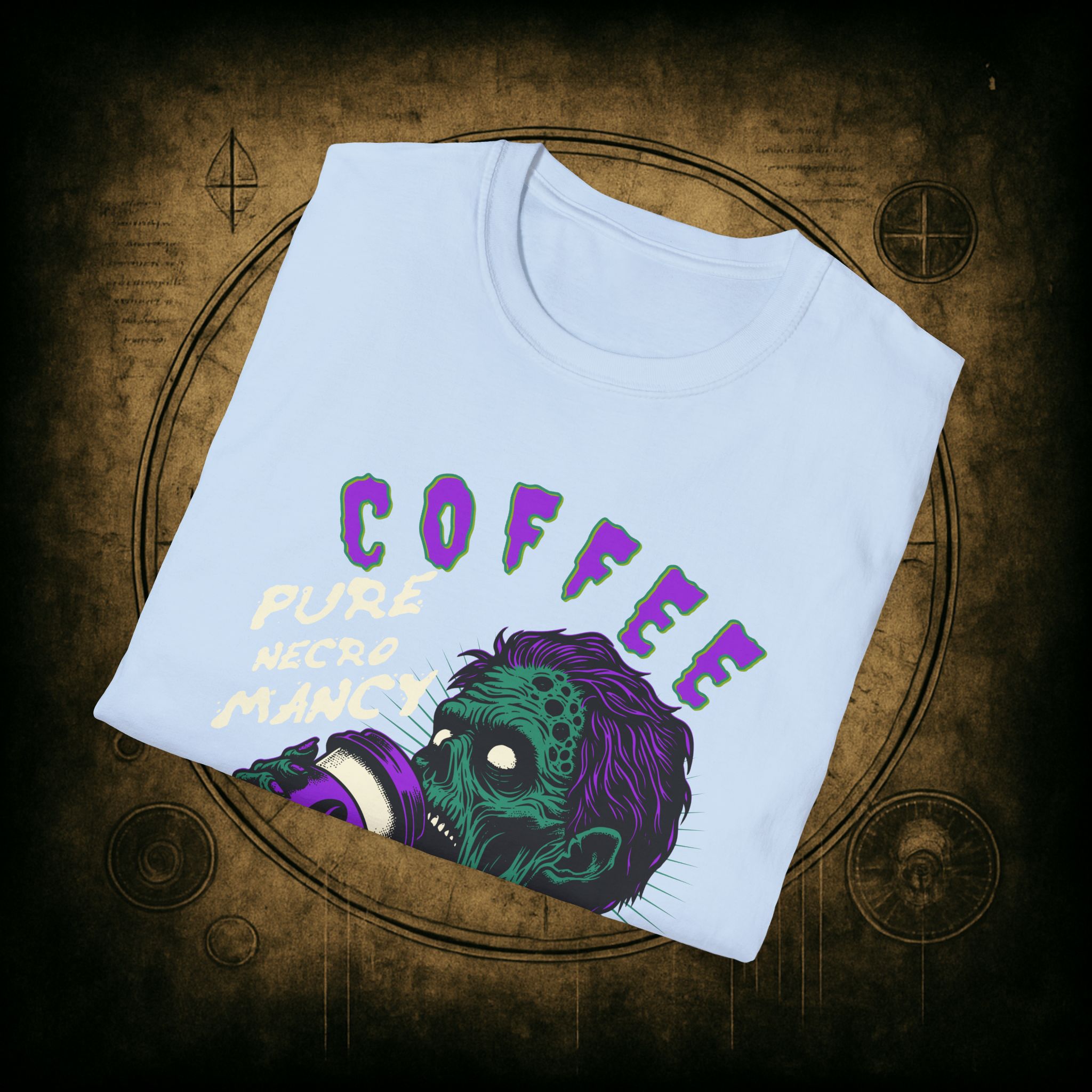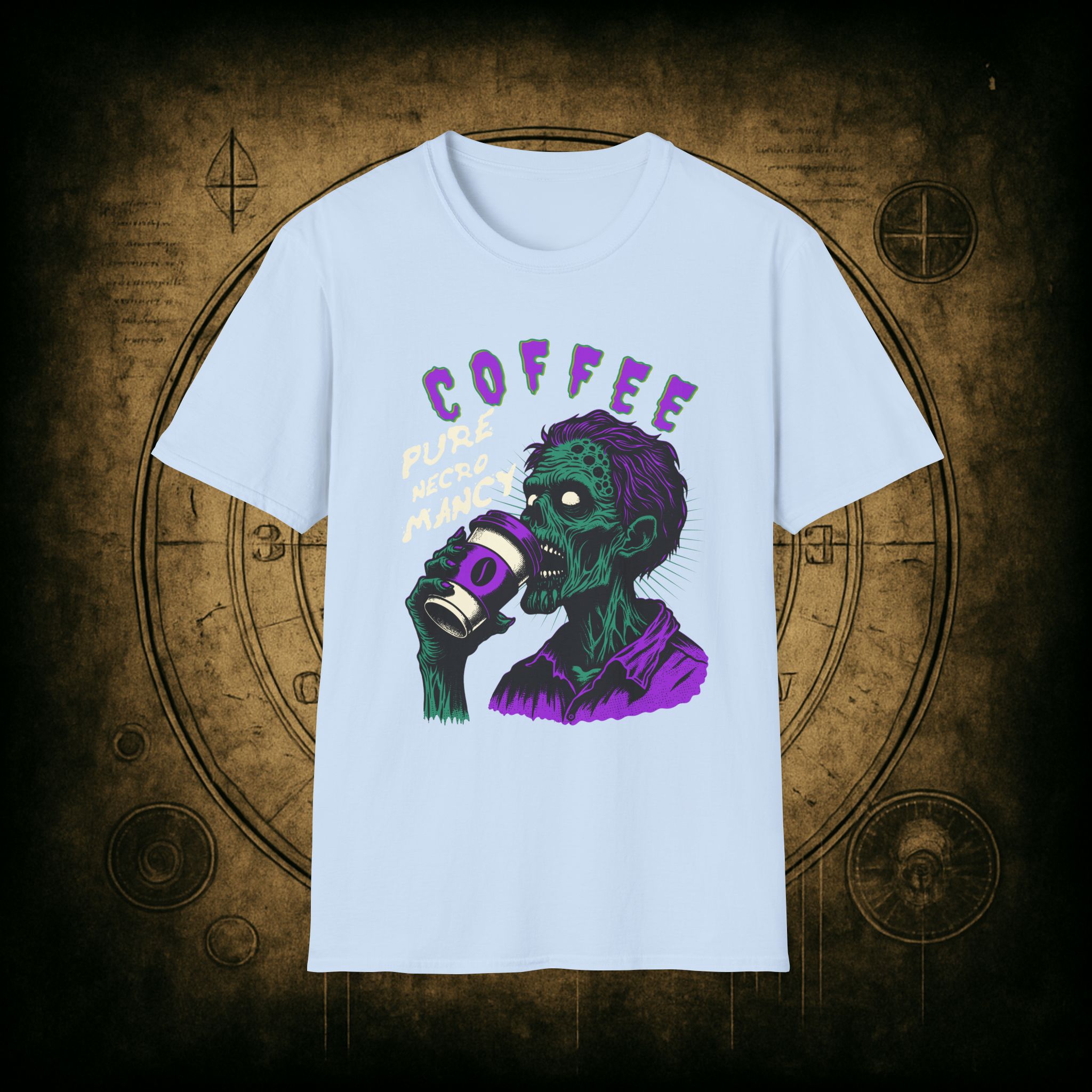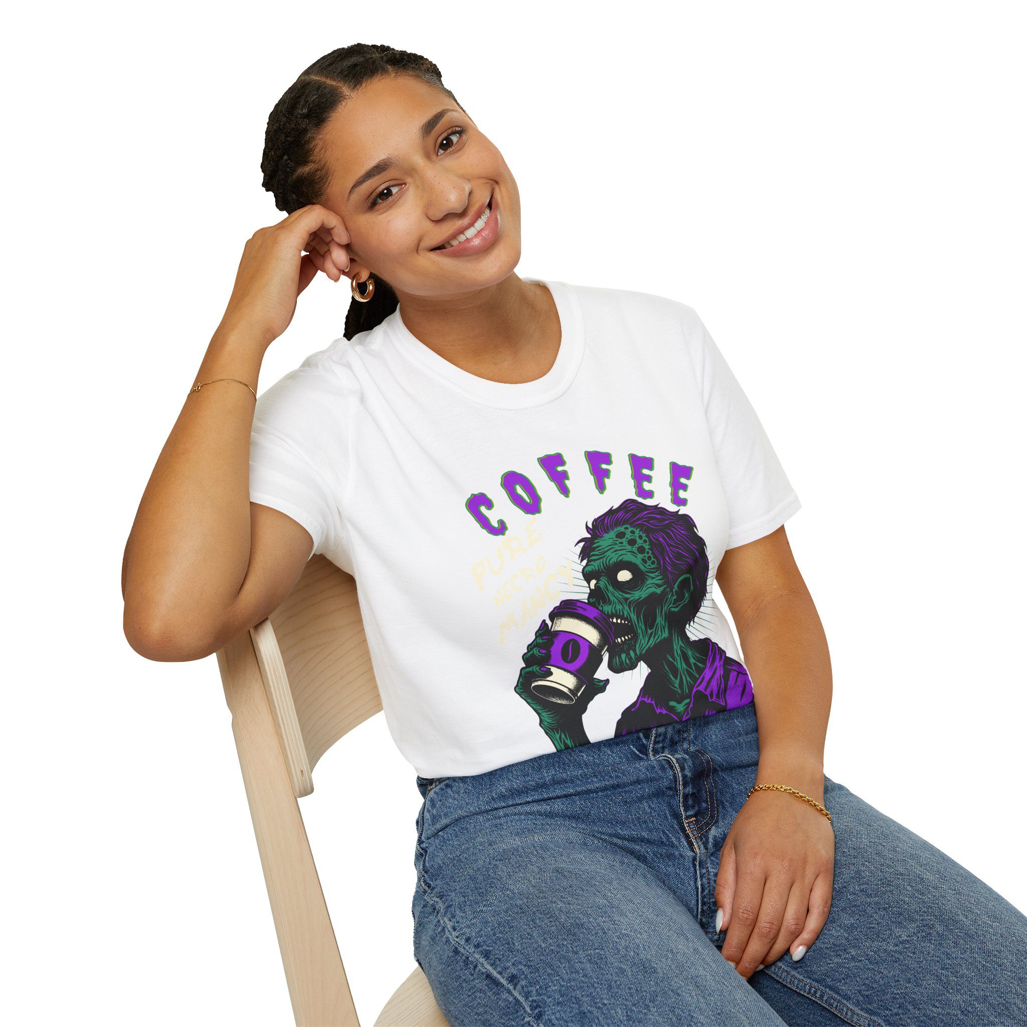This T-Shirt is perfect for the coffee addict who believes in the power of caffeine to raise the dead. With a design featuring ‘Coffee Pure Necromancy’ and zombie imagery, this shirt exudes a quirky and edgy vibe. It’s ideal for those who love dark humor and want to make a statement. This T-Shirt is relevant for coffee lovers, zombie enthusiasts, and those who appreciate unique and unconventional designs. Perfect for Halloween, casual wear, or as a conversation starter.