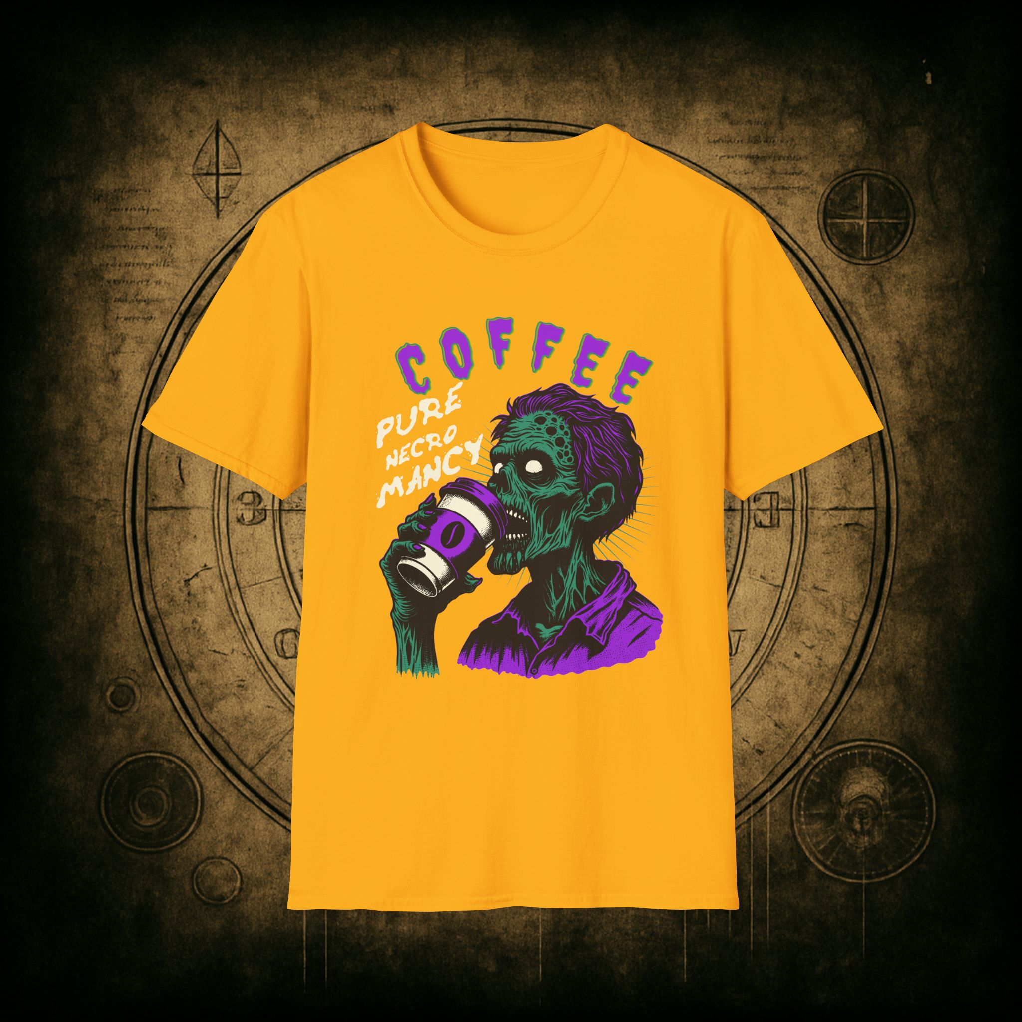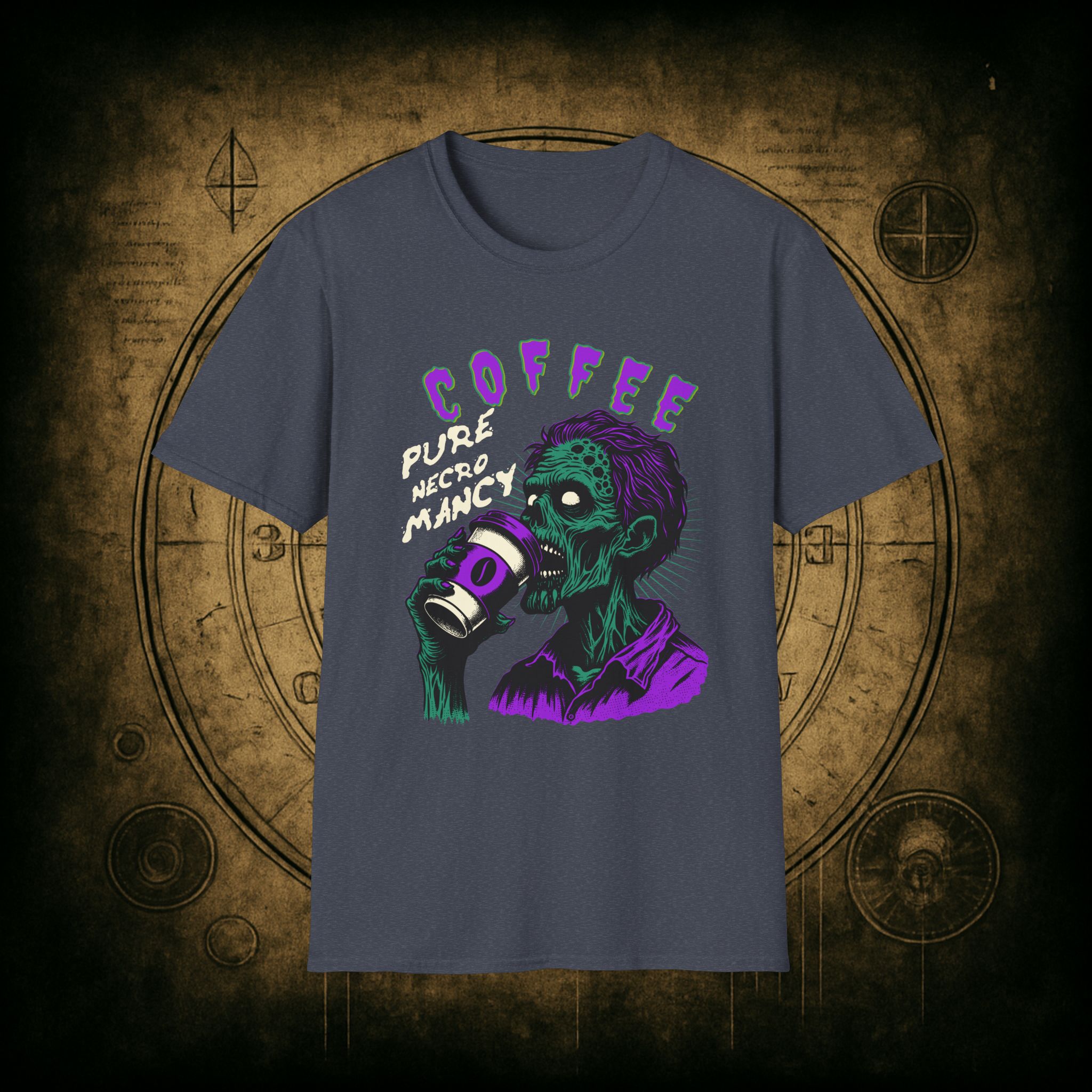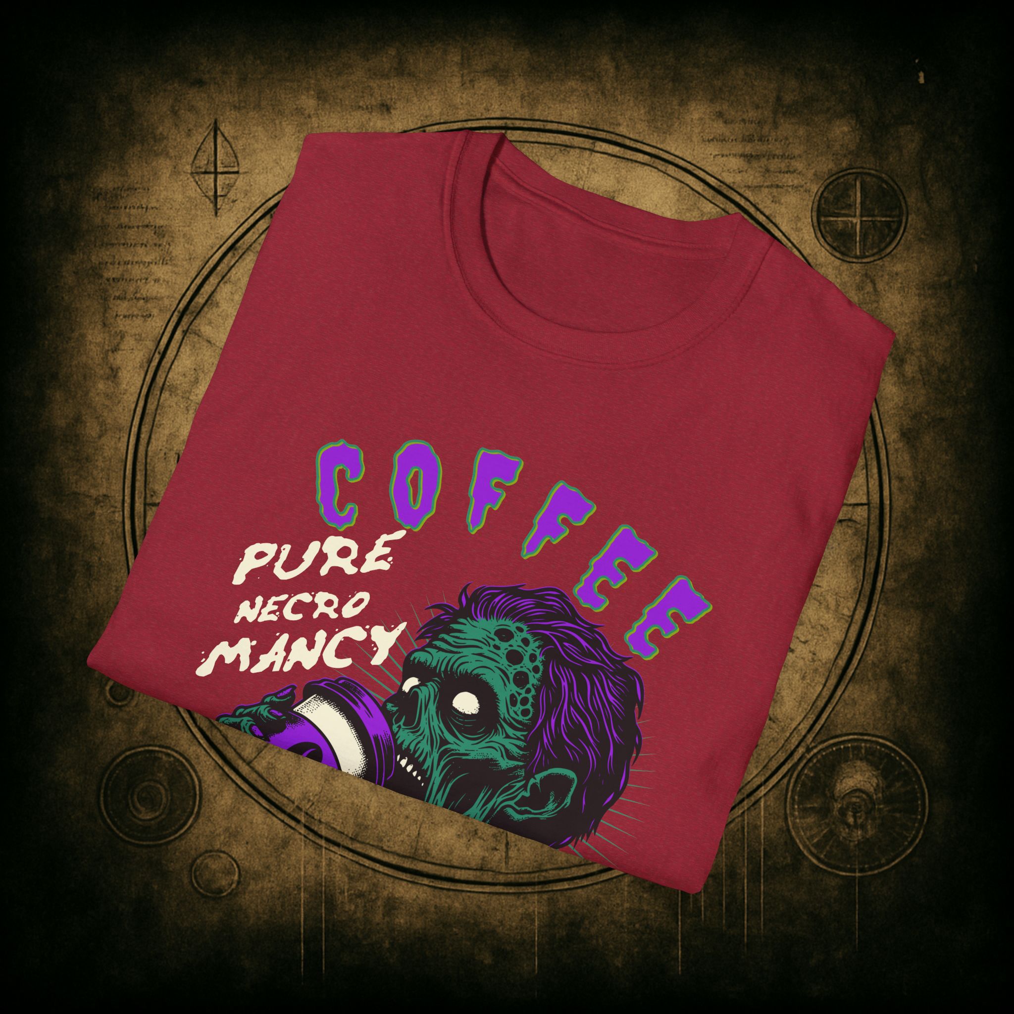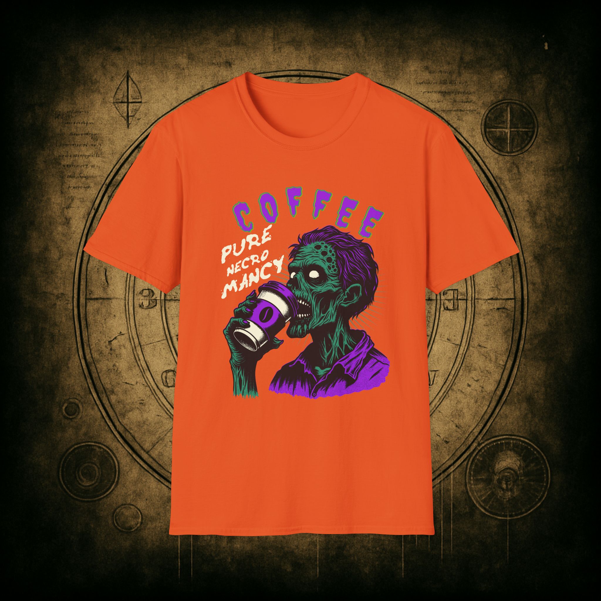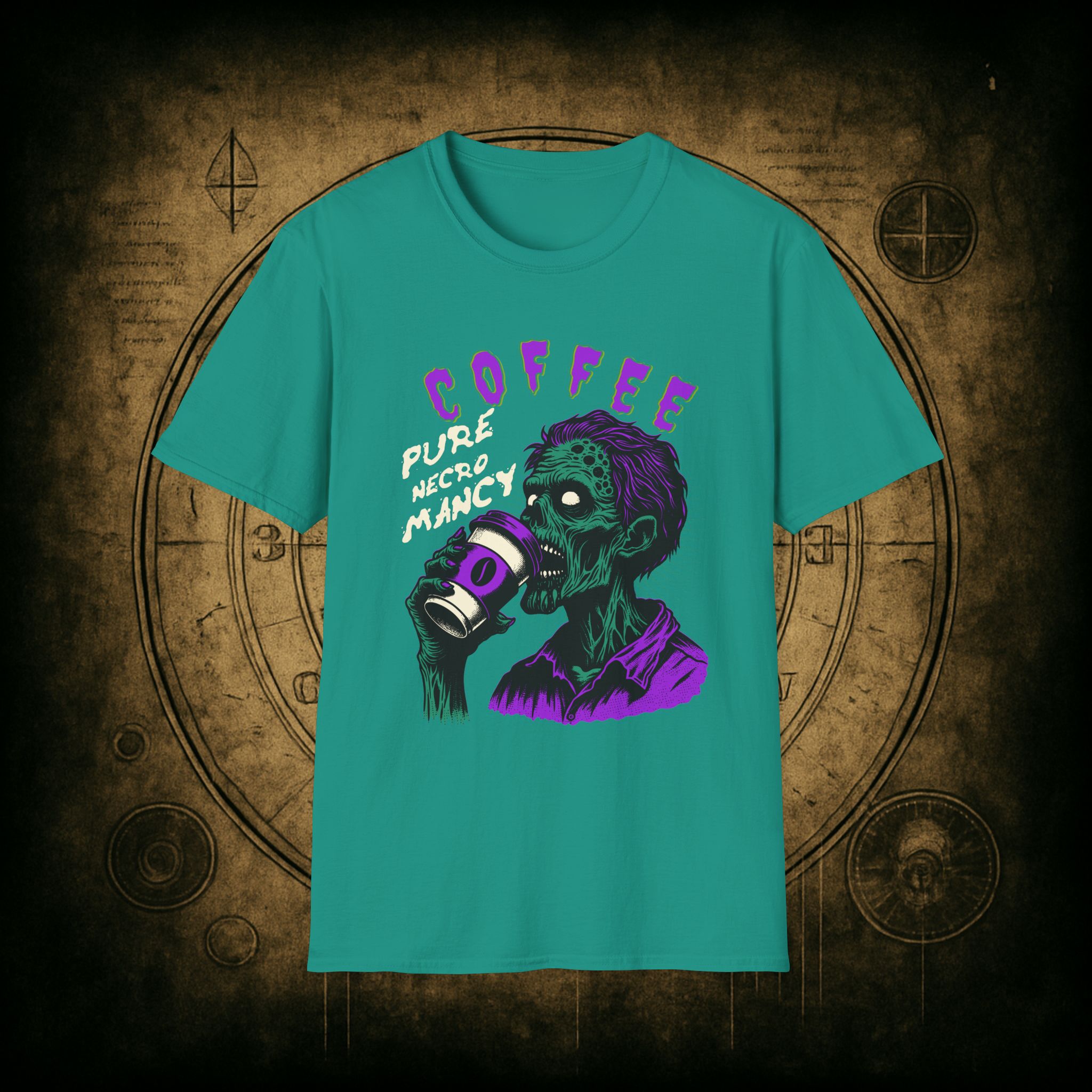 This T-Shirt is perfect for the coffee addict who believes in the power of caffeine to raise the dead. With a design featuring ‘Coffee Pure Necromancy’ and zombie imagery, this shirt exudes a quirky and edgy vibe. It’s ideal for those who love dark humor and want to make a statement. This T-Shirt is relevant for coffee lovers, zombie enthusiasts, and those who appreciate unique and unconventional designs. Perfect for Halloween, casual wear, or as a conversation starter.