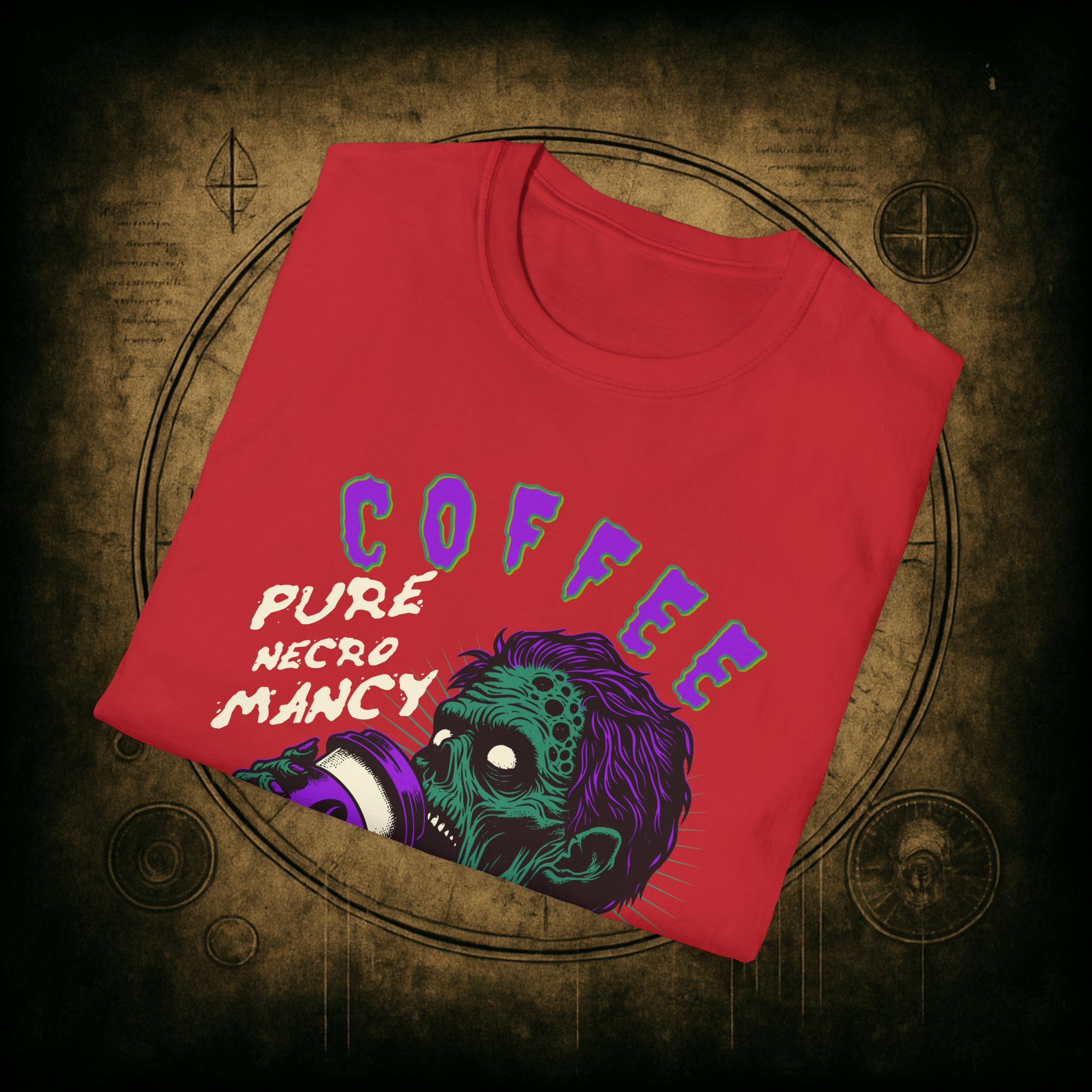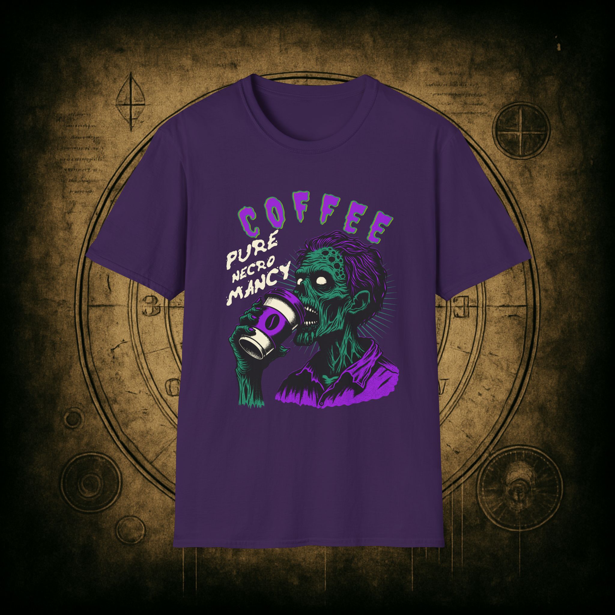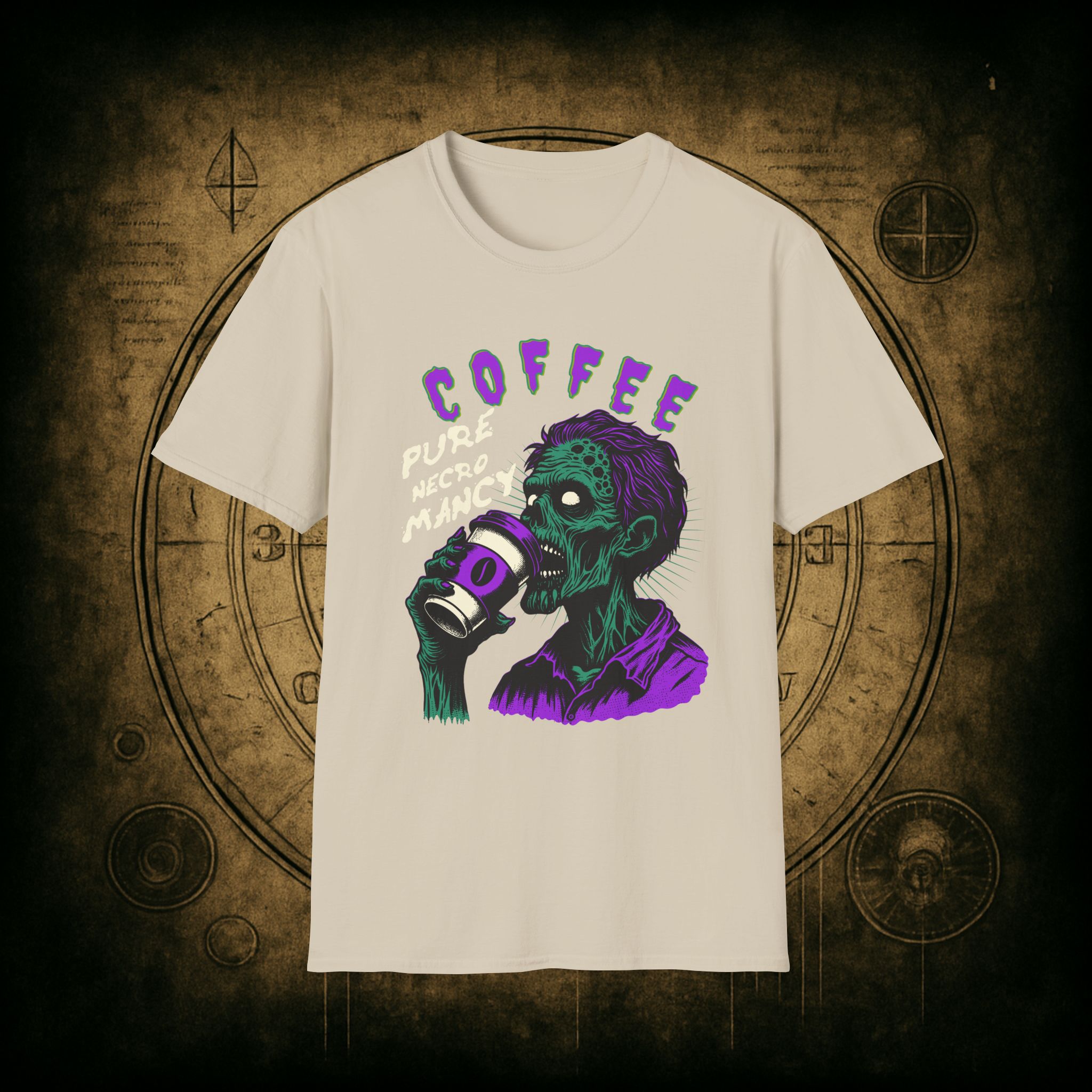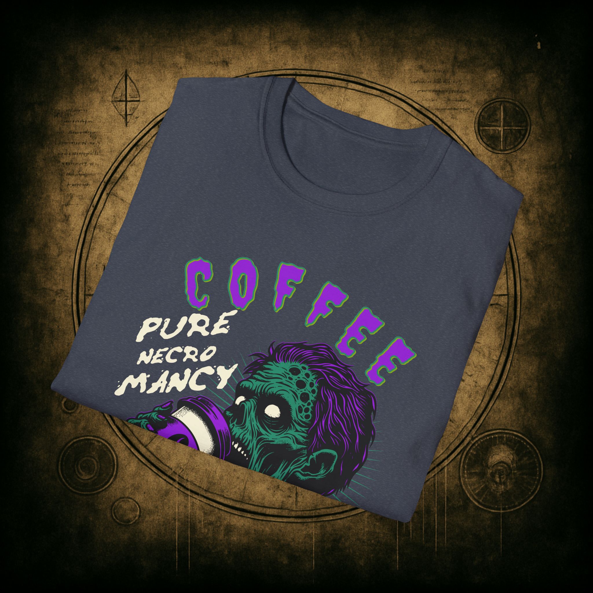 This T-Shirt is perfect for the coffee addict who believes in the power of caffeine to raise the dead. With a design featuring ‘Coffee Pure Necromancy’ and zombie imagery, this shirt exudes a quirky and edgy vibe. It’s ideal for those who love dark humor and want to make a statement. This T-Shirt is relevant for coffee lovers, zombie enthusiasts, and those who appreciate unique and unconventional designs. Perfect for Halloween, casual wear, or as a conversation starter.