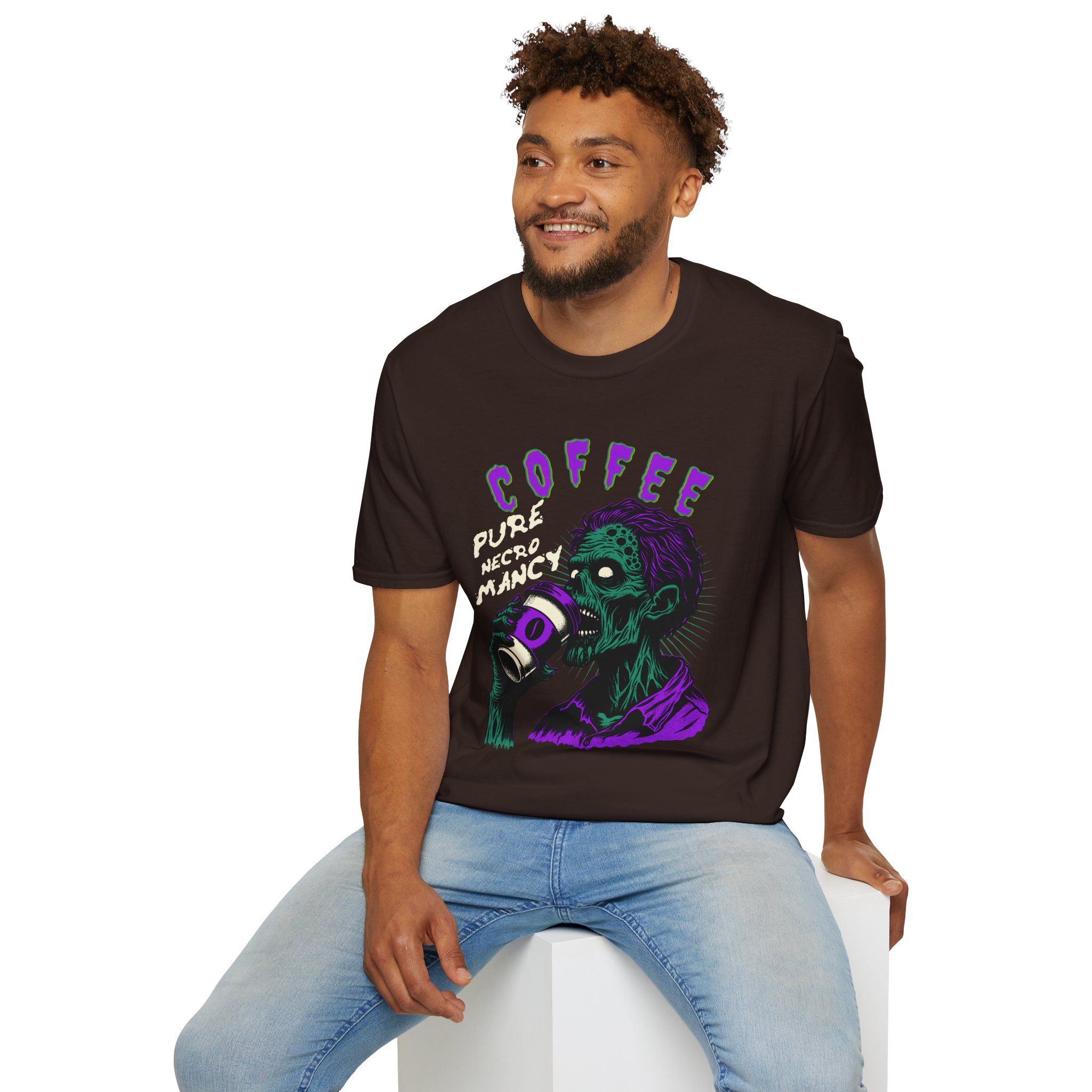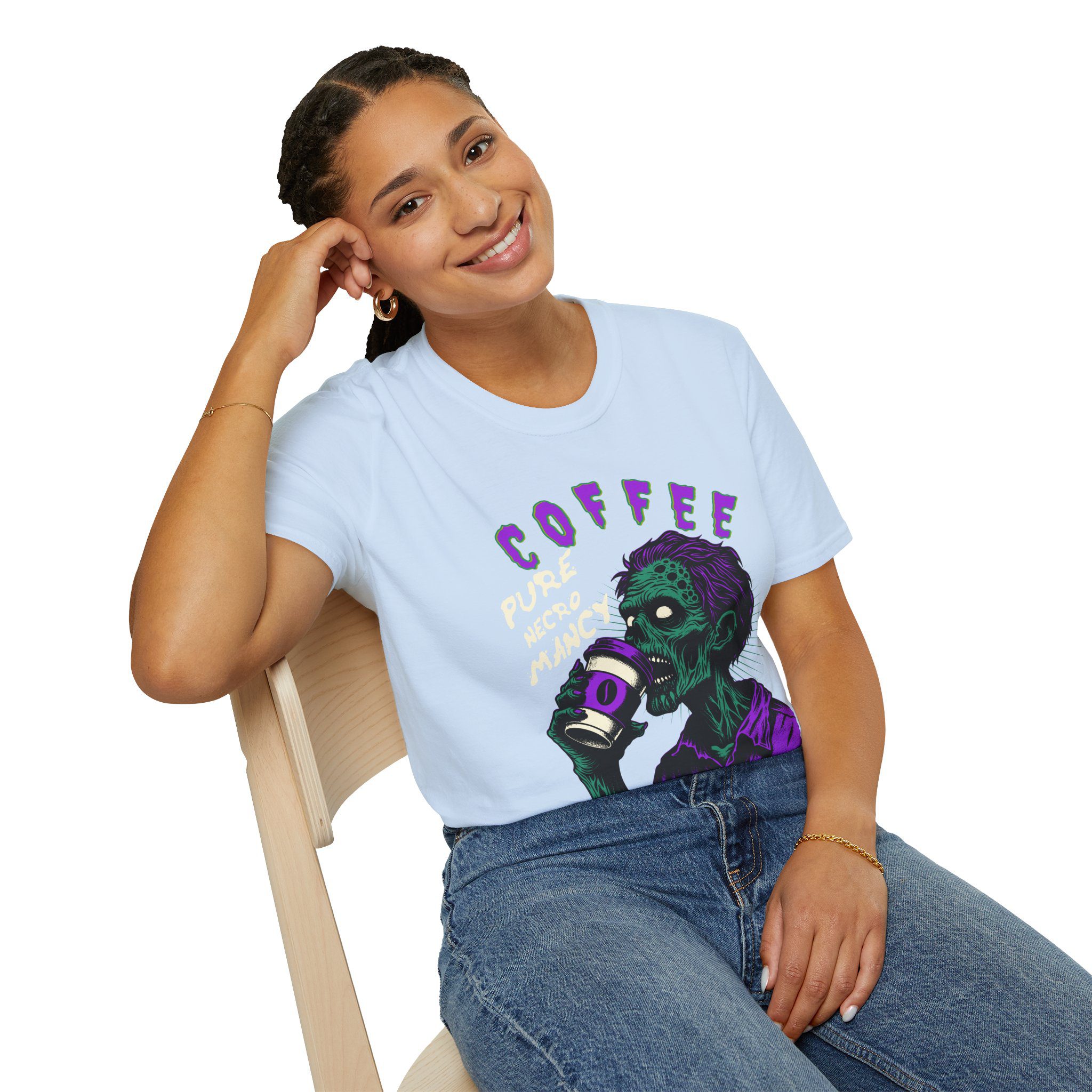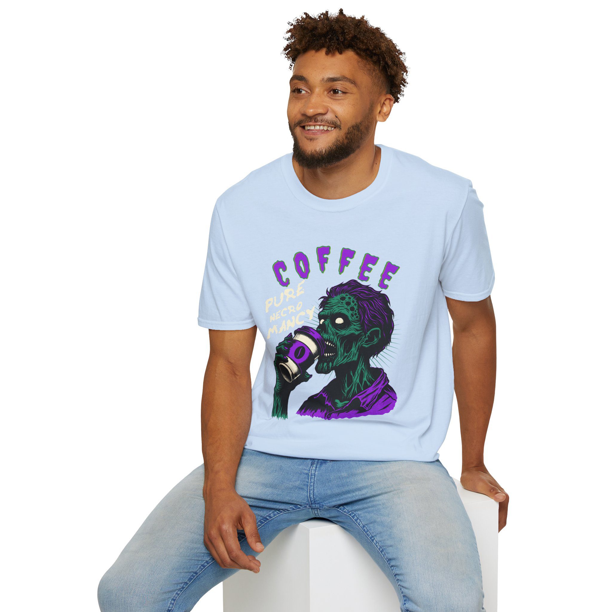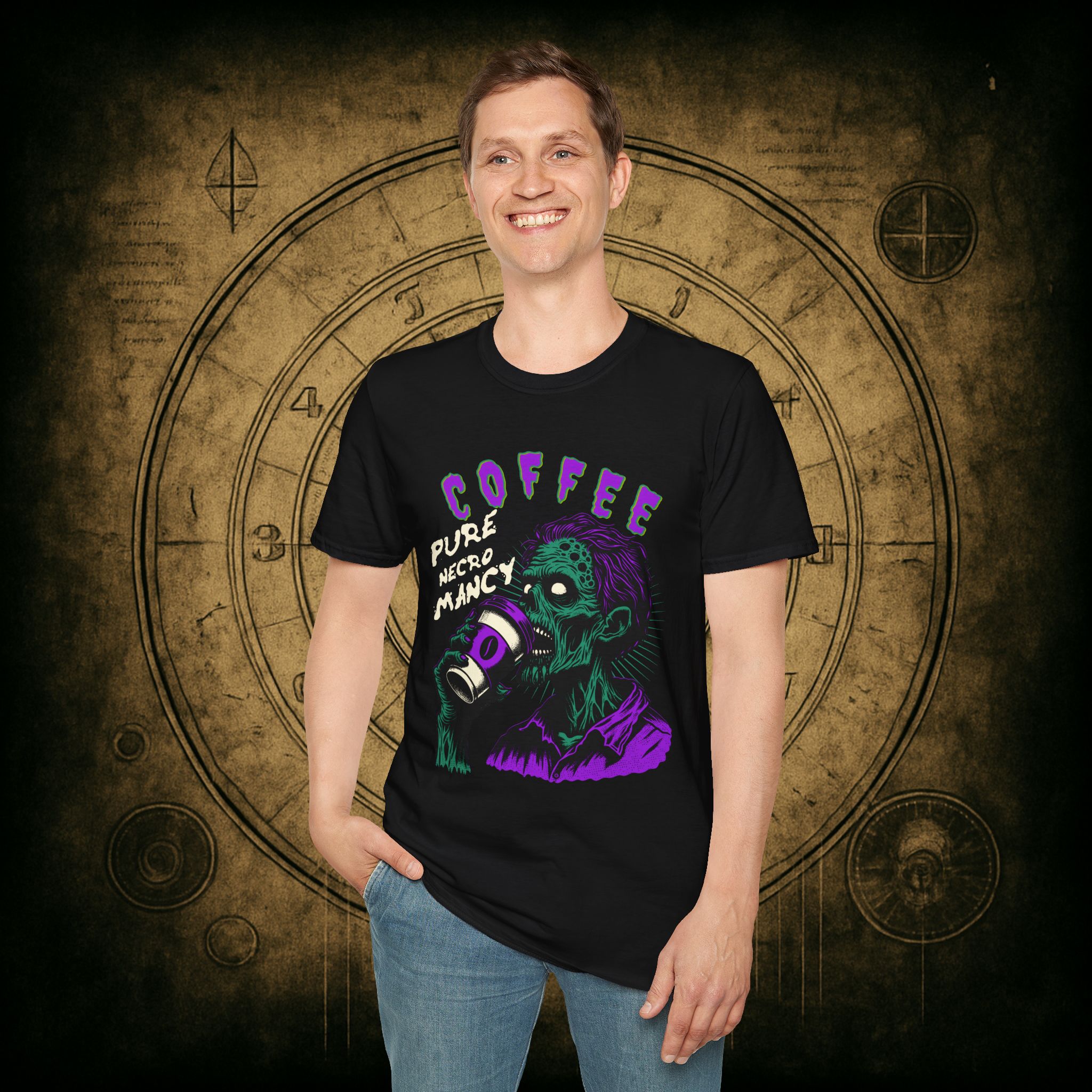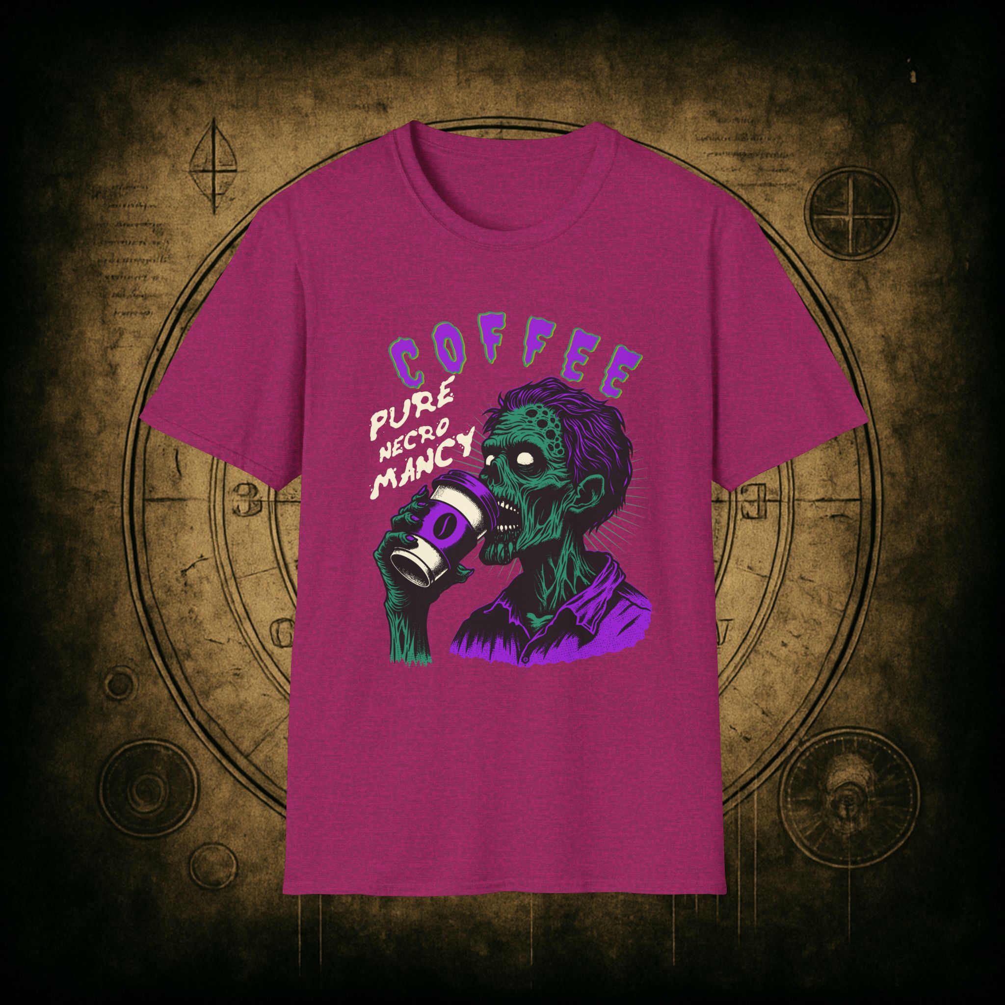 This T-Shirt is perfect for the coffee addict who believes in the power of caffeine to raise the dead. With a design featuring ‘Coffee Pure Necromancy’ and zombie imagery, this shirt exudes a quirky and edgy vibe. It’s ideal for those who love dark humor and want to make a statement. This T-Shirt is relevant for coffee lovers, zombie enthusiasts, and those who appreciate unique and unconventional designs. Perfect for Halloween, casual wear, or as a conversation starter.