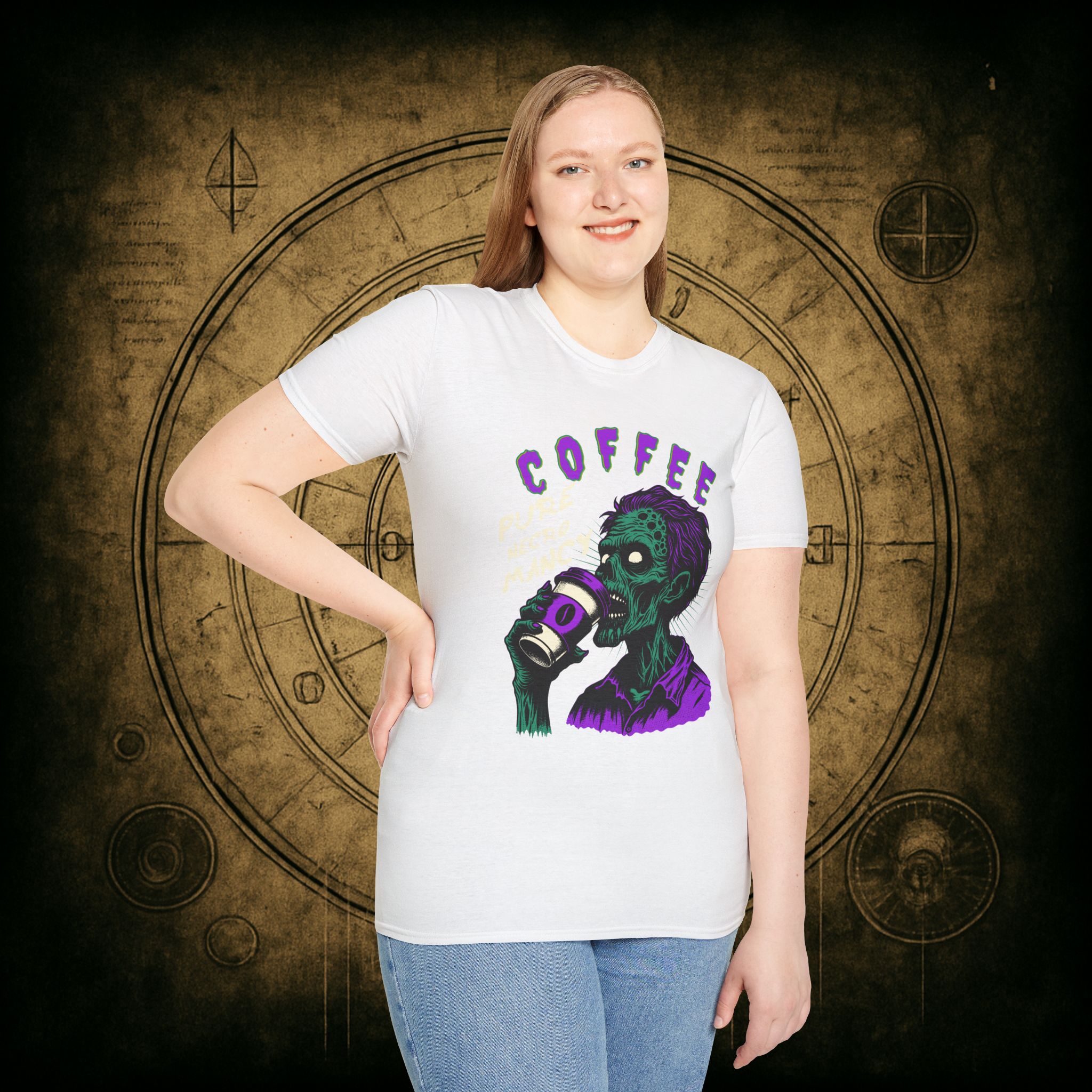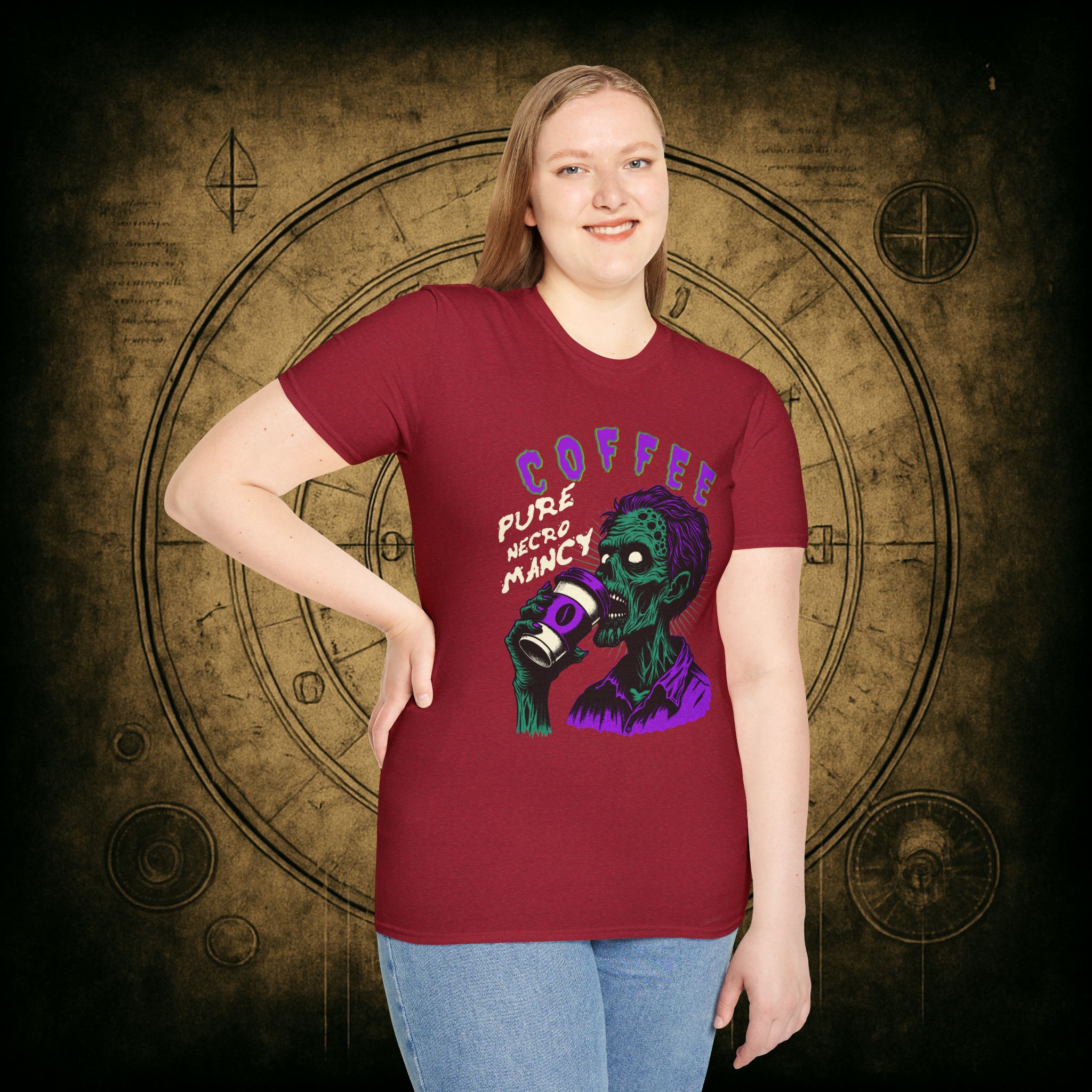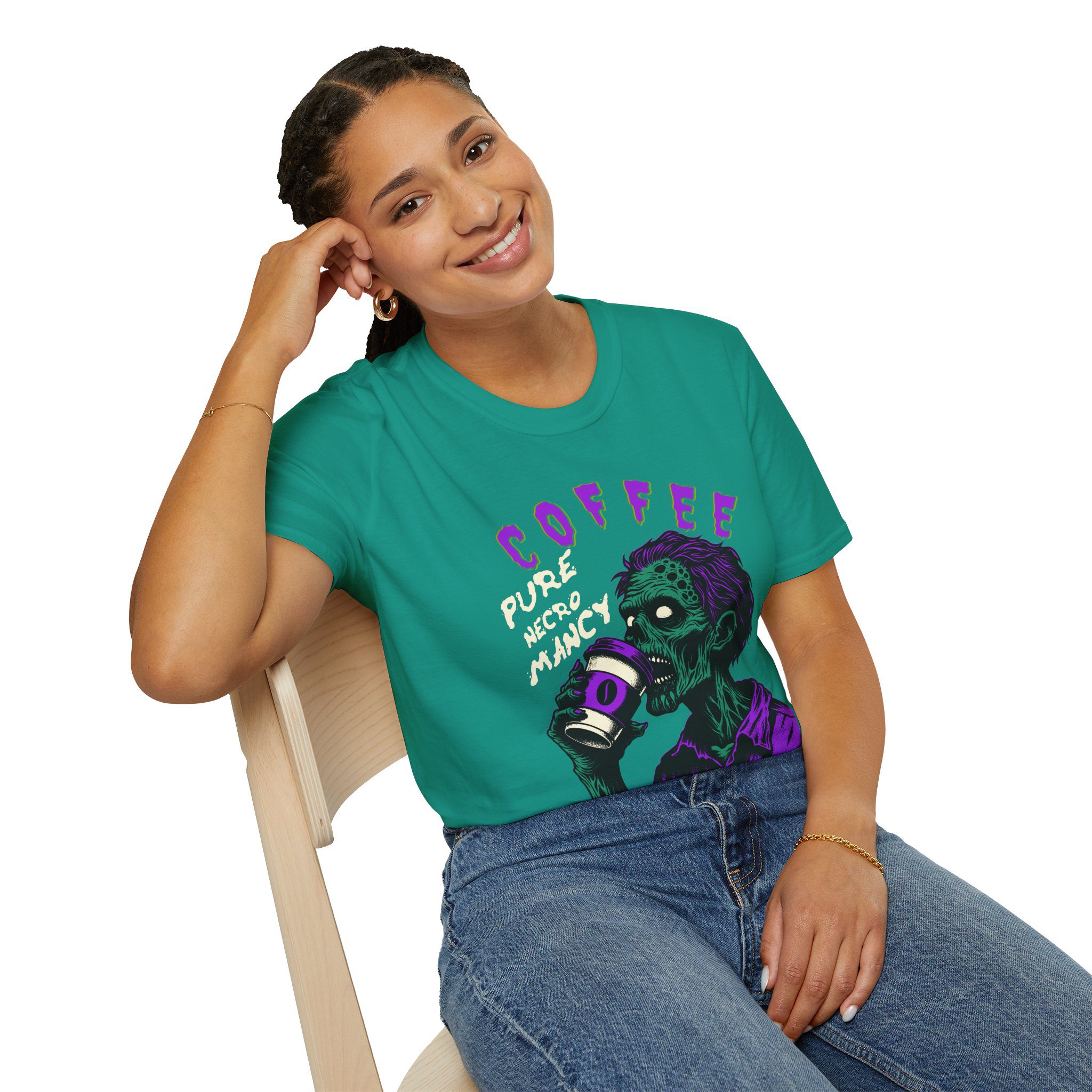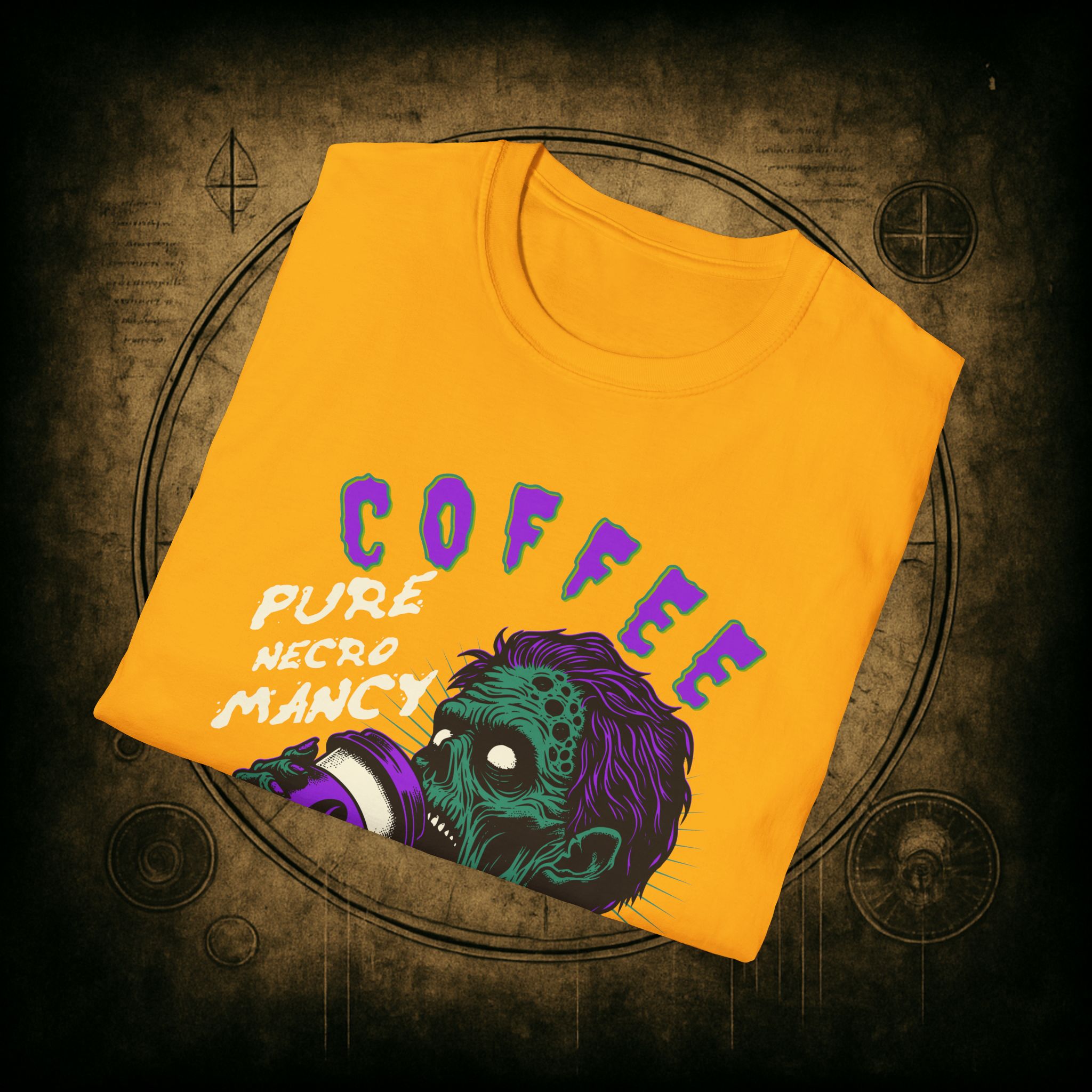 This T-Shirt is perfect for the coffee addict who believes in the power of caffeine to raise the dead. With a design featuring ‘Coffee Pure Necromancy’ and zombie imagery, this shirt exudes a quirky and edgy vibe. It’s ideal for those who love dark humor and want to make a statement. This T-Shirt is relevant for coffee lovers, zombie enthusiasts, and those who appreciate unique and unconventional designs. Perfect for Halloween, casual wear, or as a conversation starter.