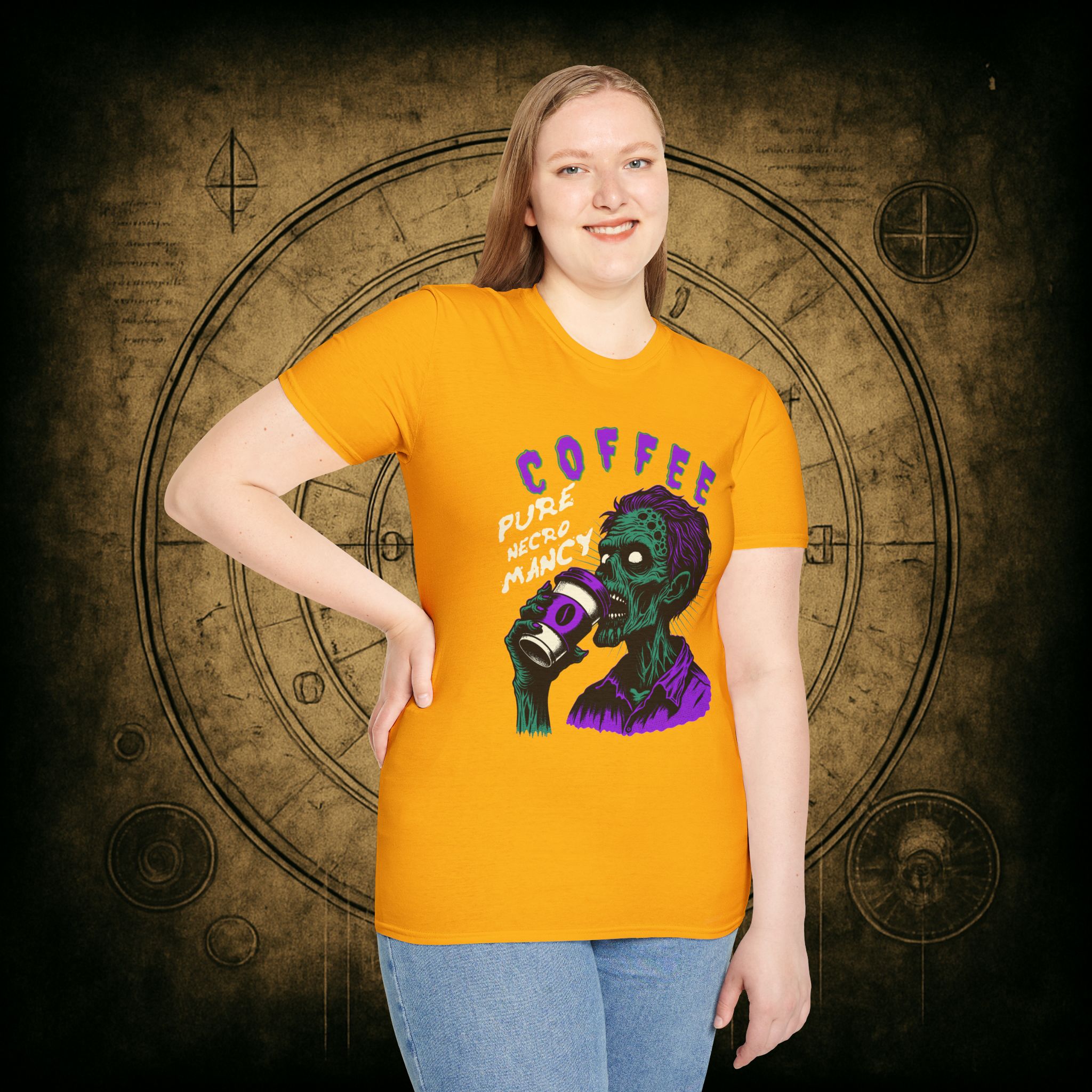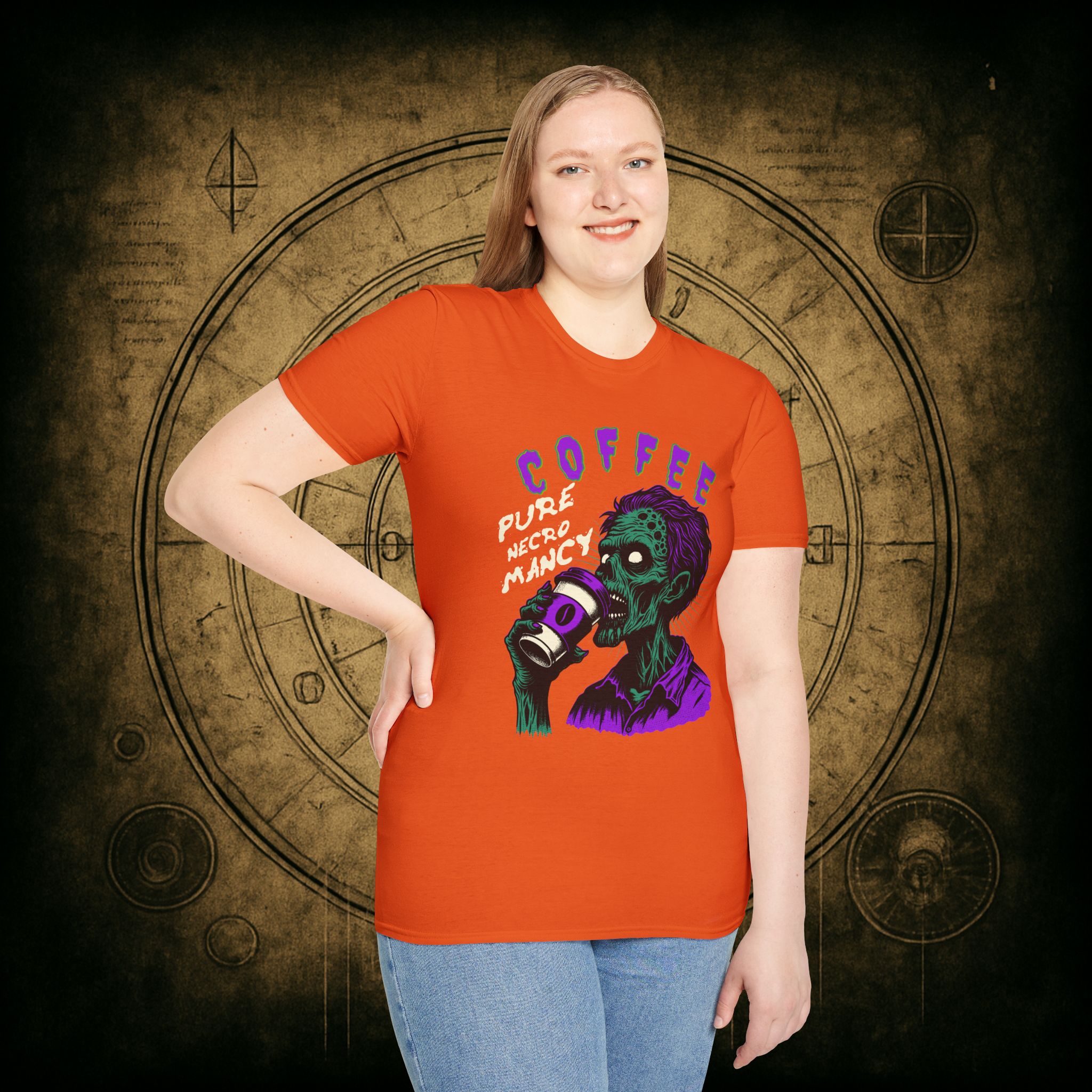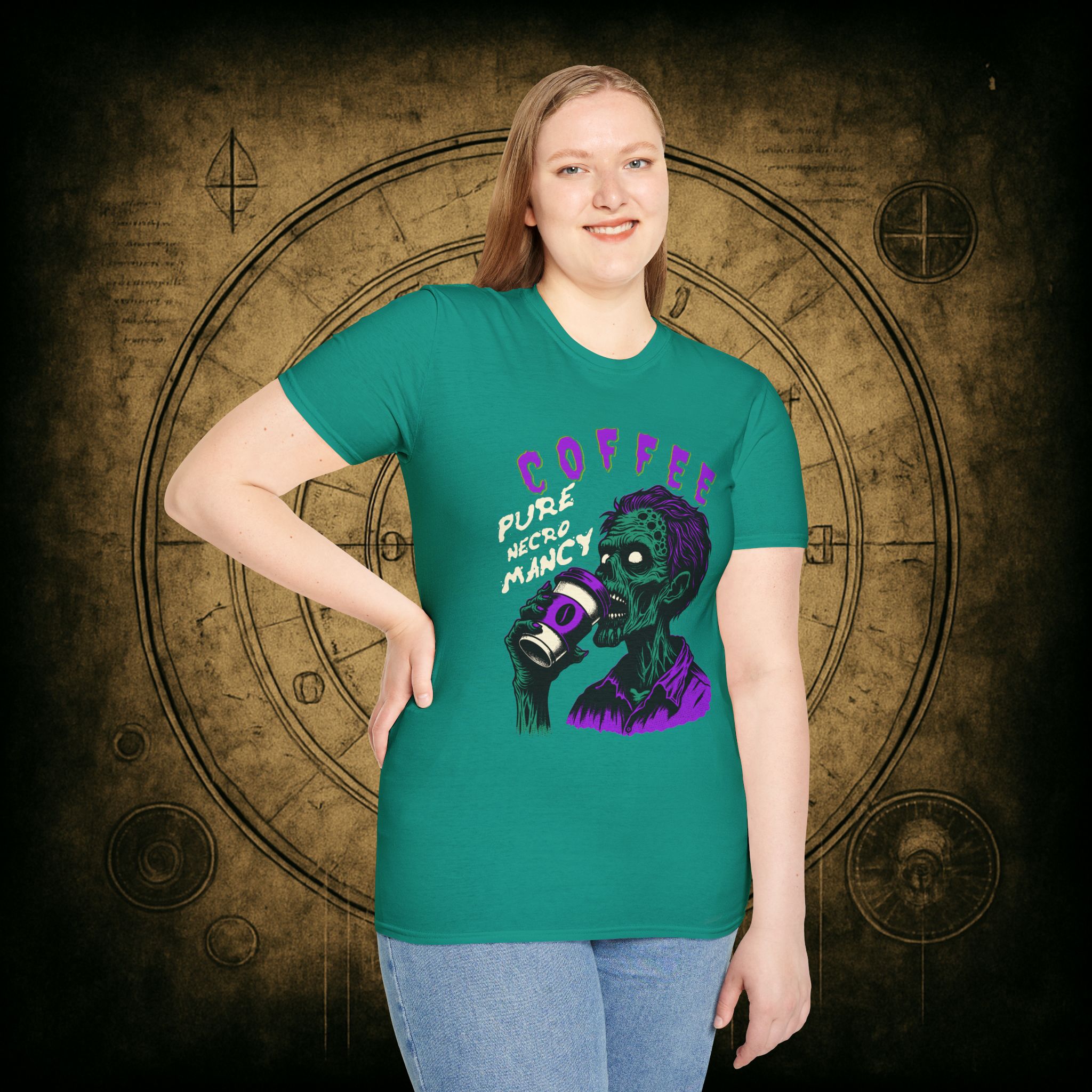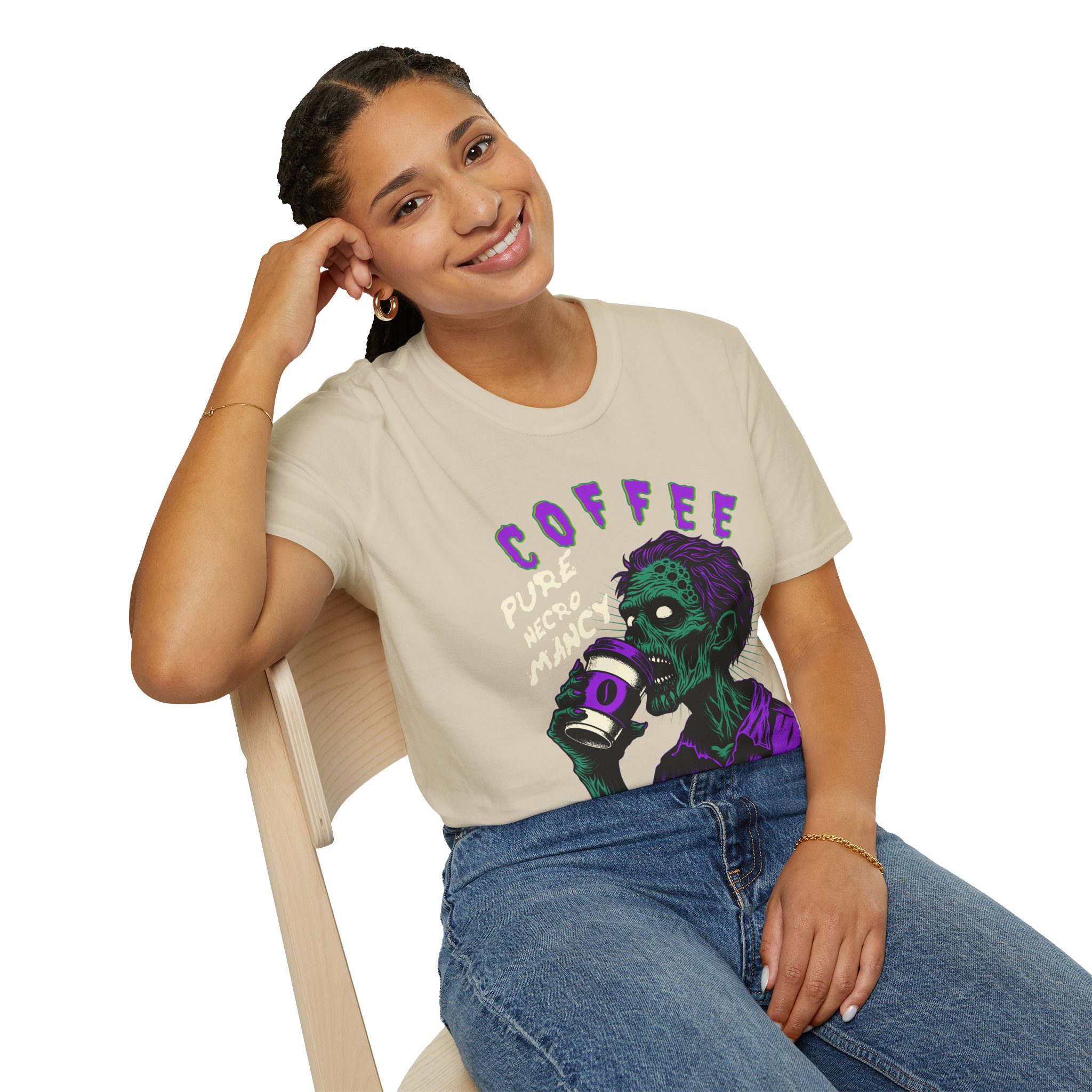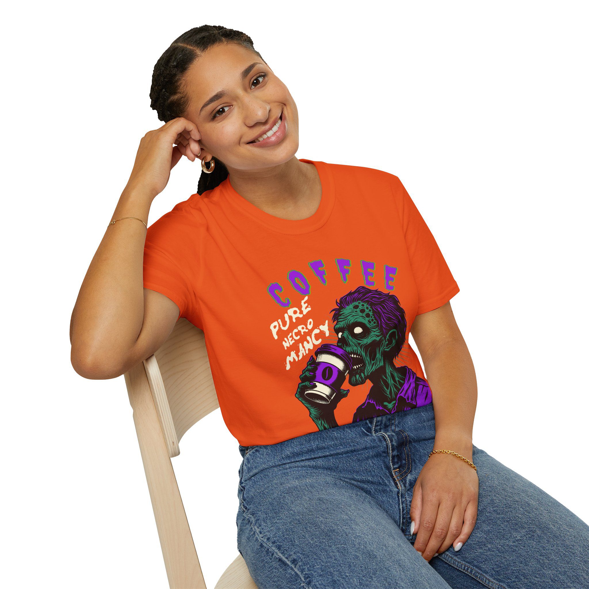 This T-Shirt is perfect for the coffee addict who believes in the power of caffeine to raise the dead. With a design featuring ‘Coffee Pure Necromancy’ and zombie imagery, this shirt exudes a quirky and edgy vibe. It’s ideal for those who love dark humor and want to make a statement. This T-Shirt is relevant for coffee lovers, zombie enthusiasts, and those who appreciate unique and unconventional designs. Perfect for Halloween, casual wear, or as a conversation starter.